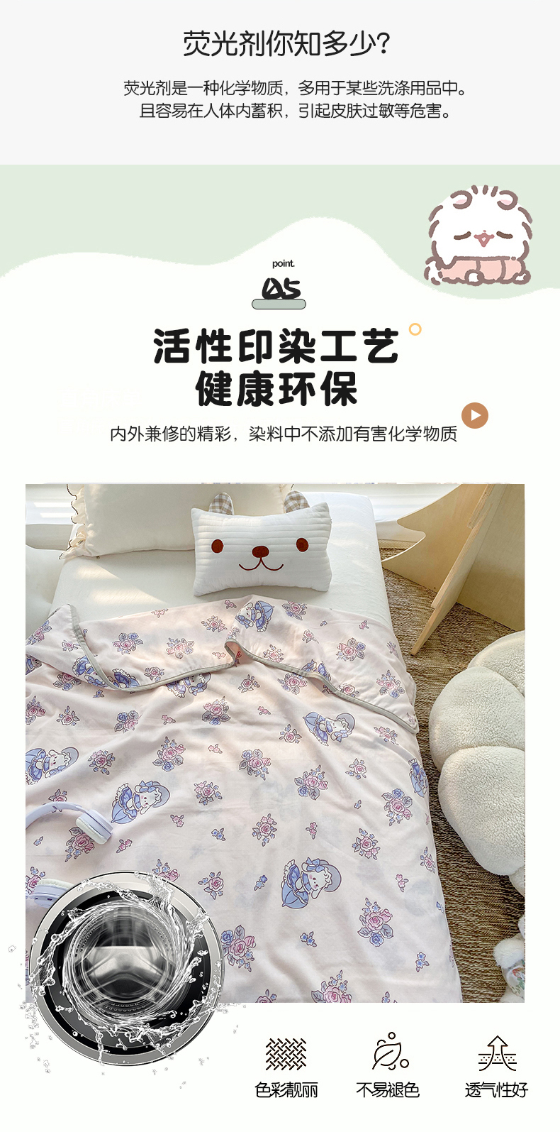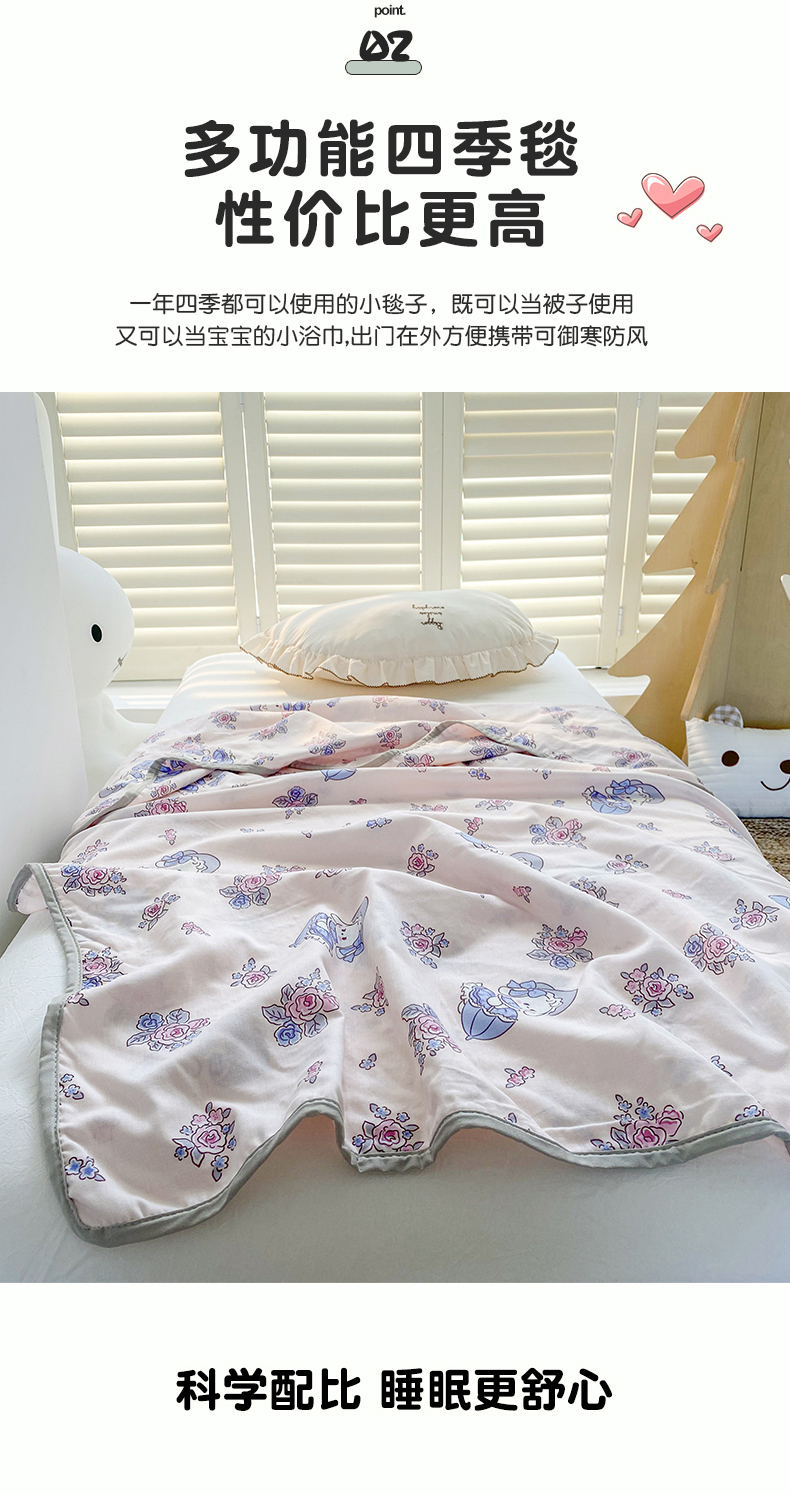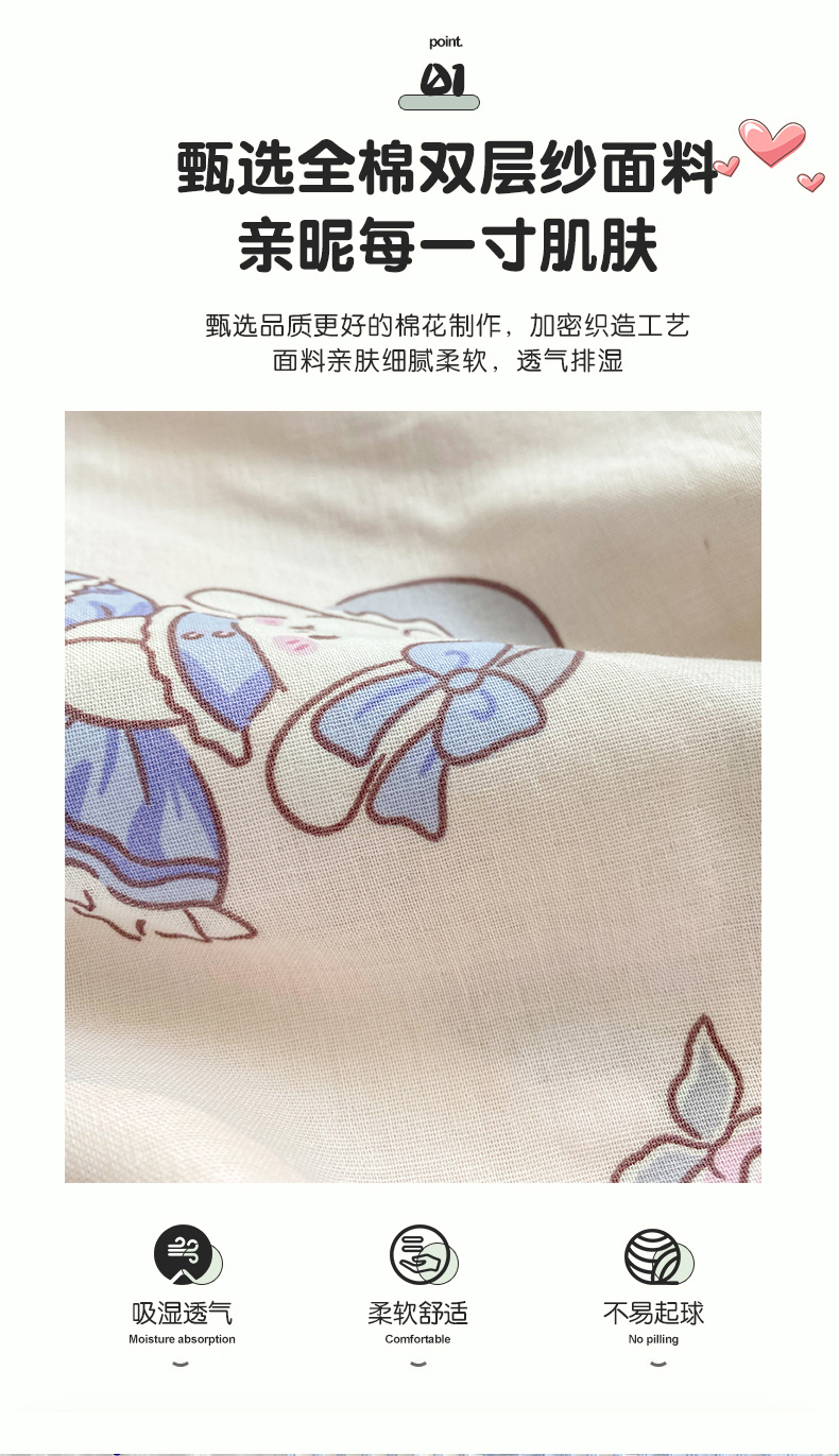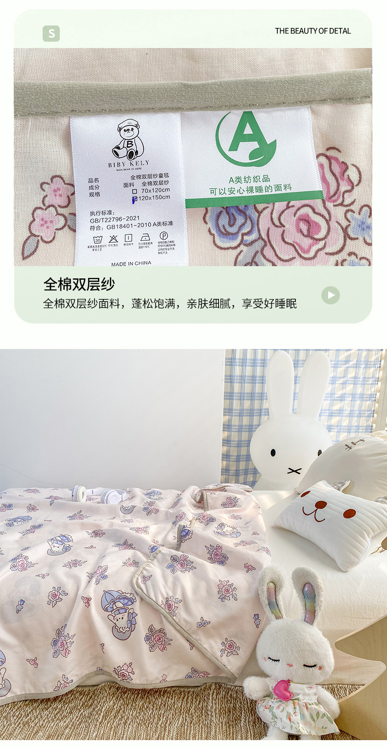 (总)潮邦 2025新款全棉双层纱多功能盖毯,白露-白,背包兔,彩虹糖,车厘子,动物派,秋之花,甜心字母,兔跳跳,兔之园,心怡粉,雨伞兔,棕熊