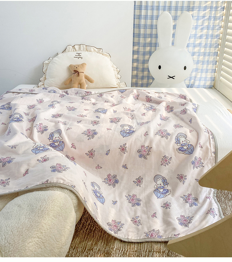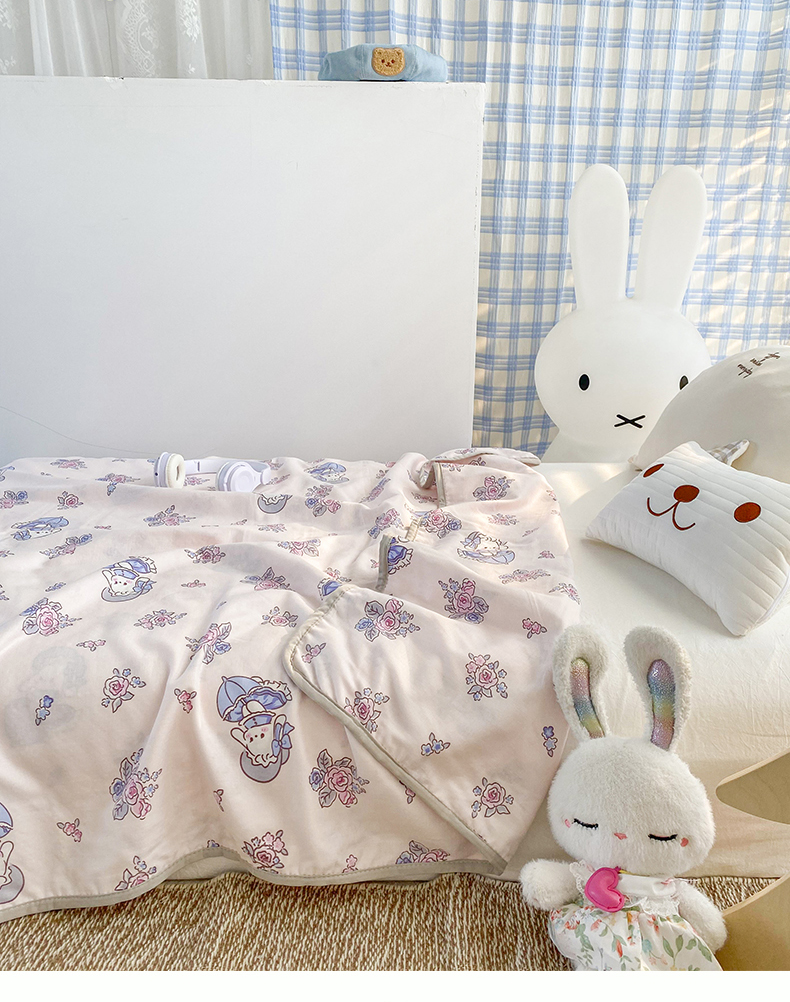 潮邦 2025新款全棉双层纱多功能盖毯 雨伞兔