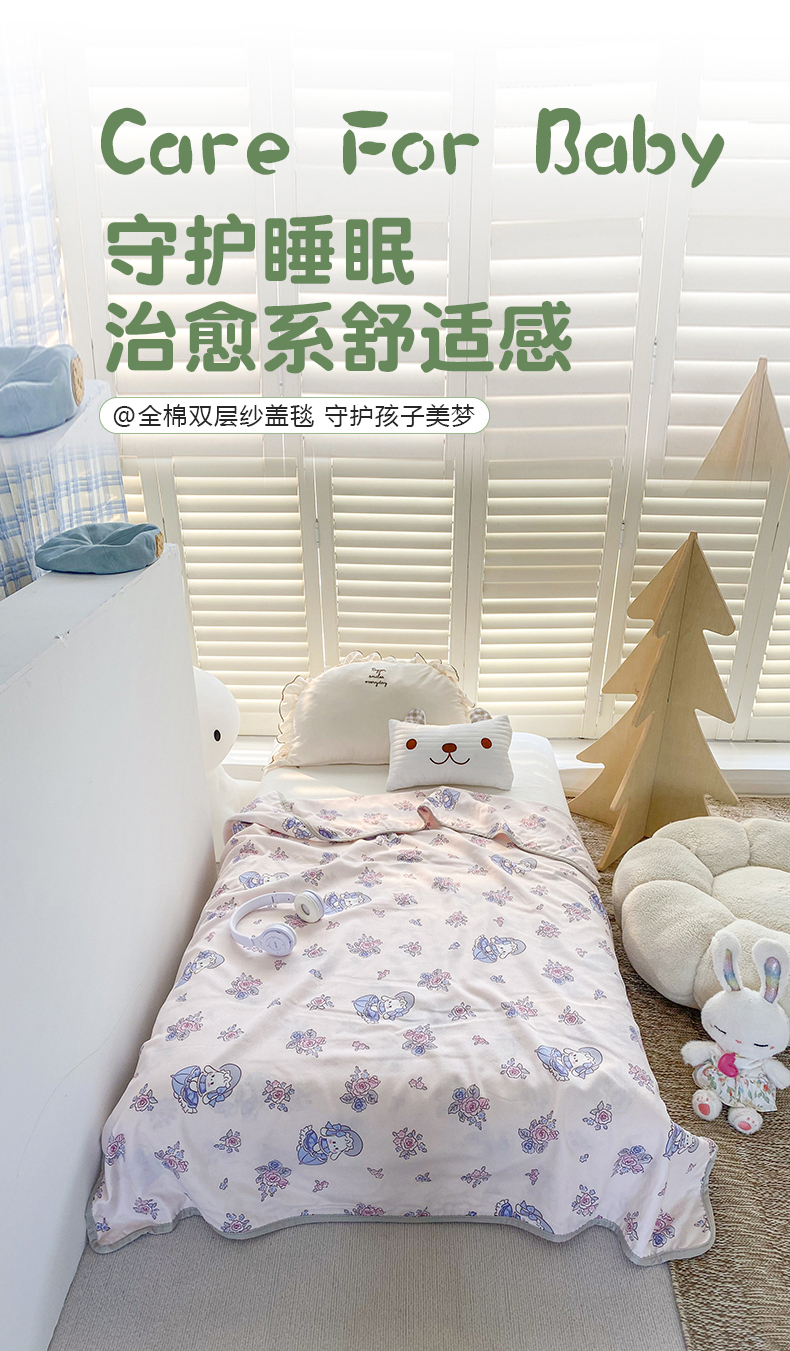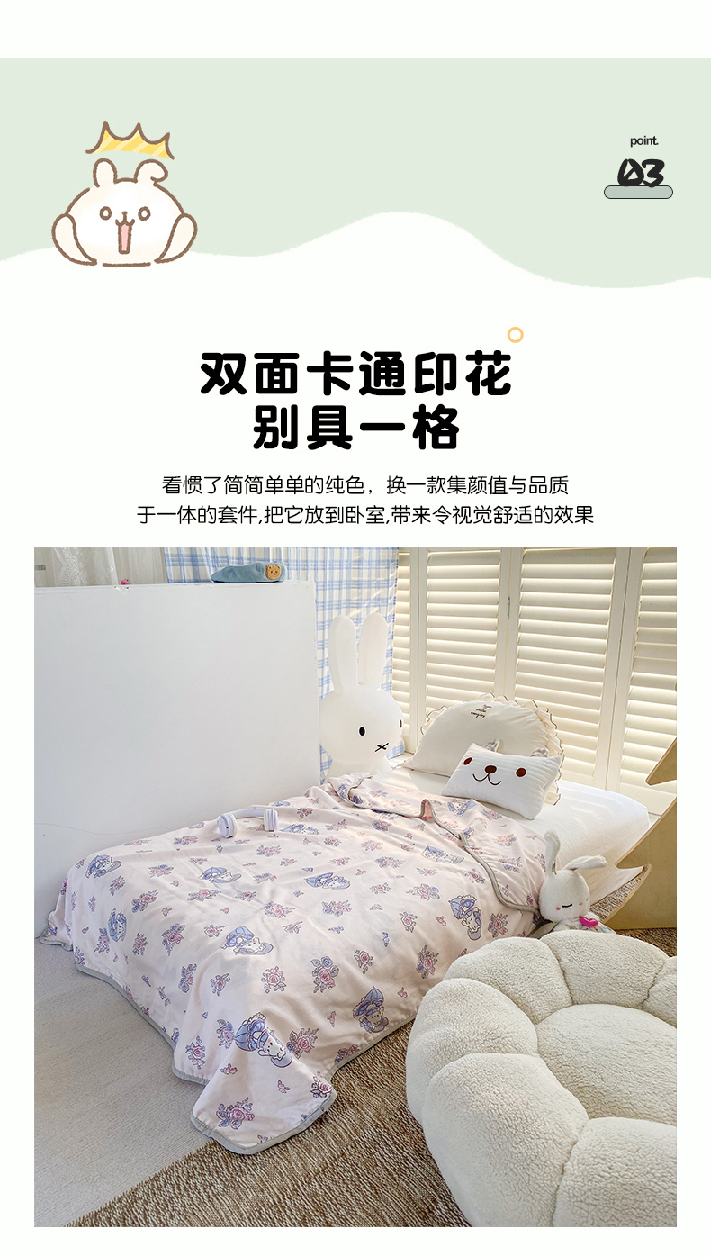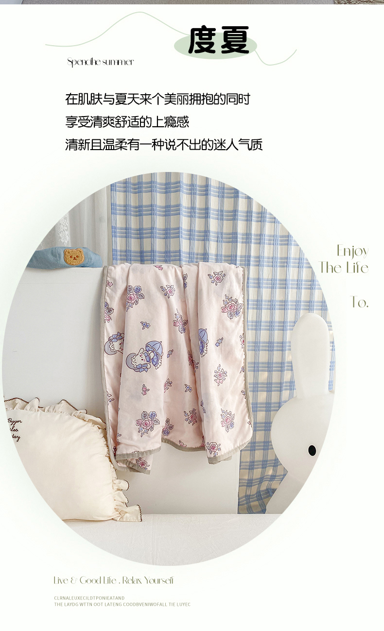 商品名称:潮邦 2025新款全棉双层纱多功能盖毯 雨伞兔