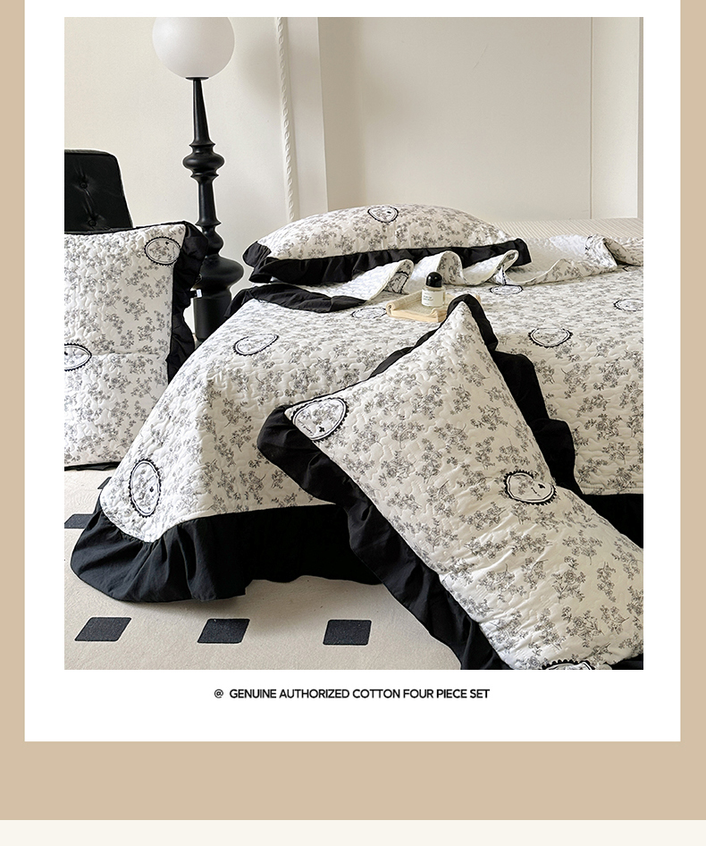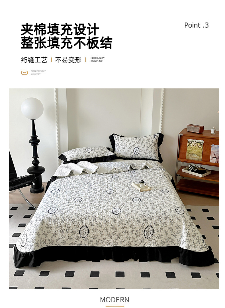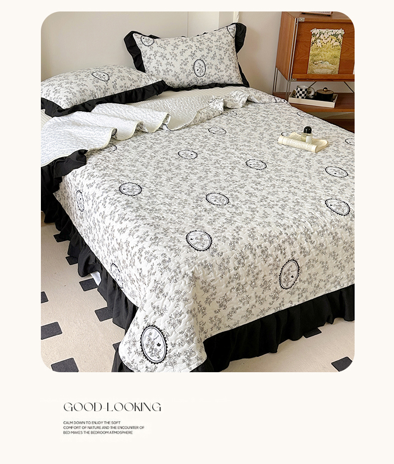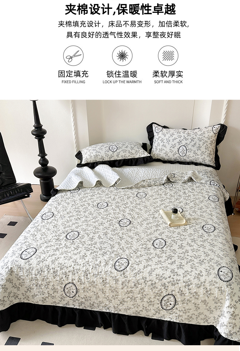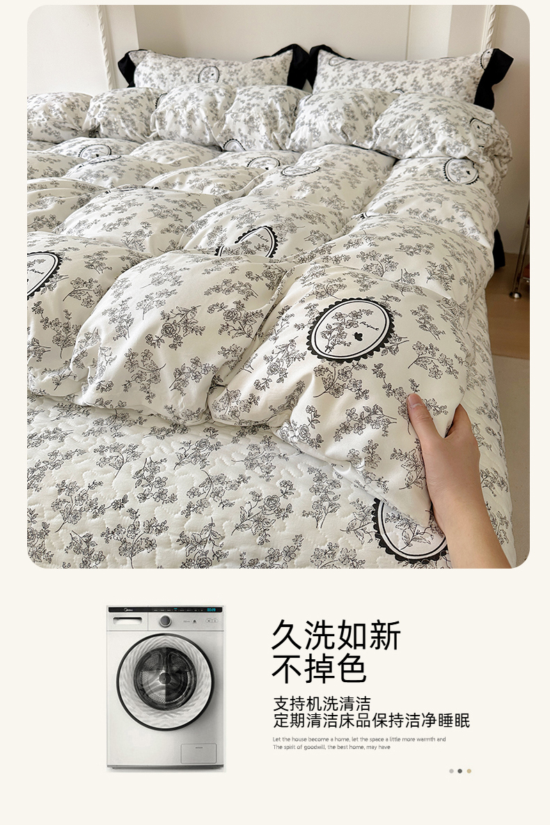 当前位置: 91家纺网 > 商品网购 > 床品套件 > 四件套 > 化纤普通四件套 > 韩秀家纺 2025新款 四季跑量款花边夹棉加厚水洗棉泡泡棉糯感印花韩版床盖四件套 镜心缘