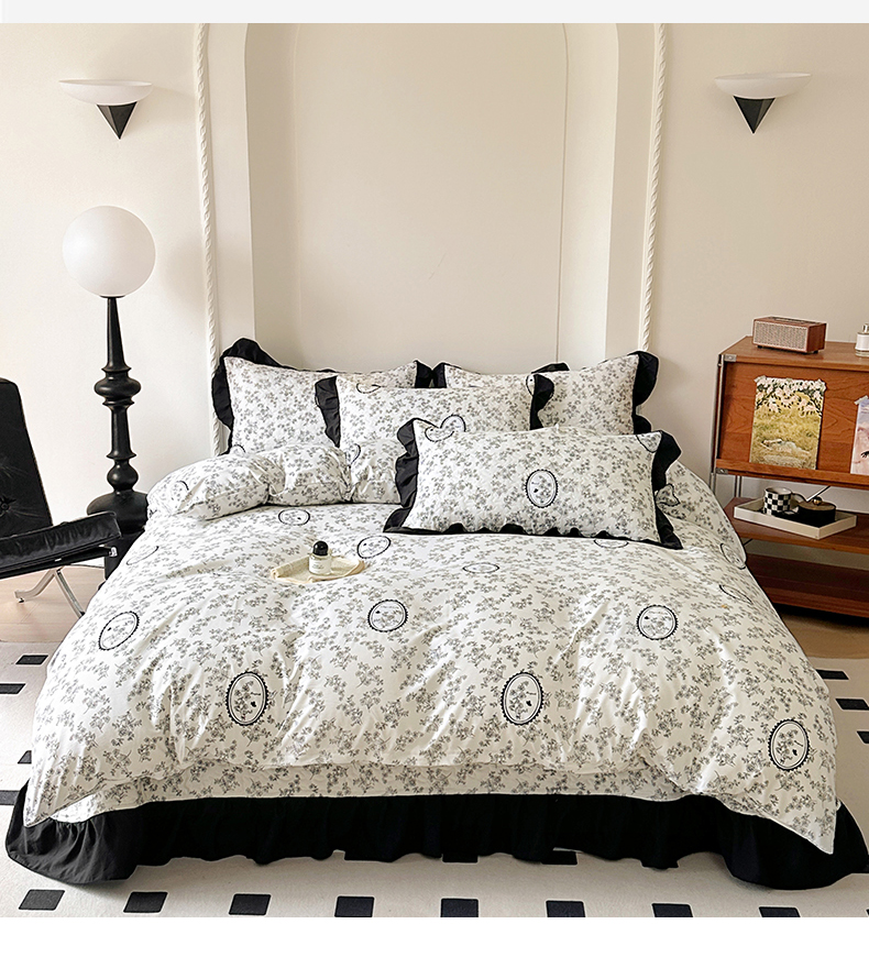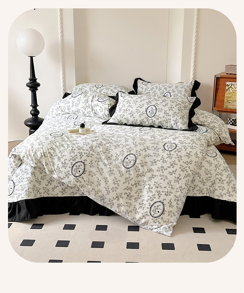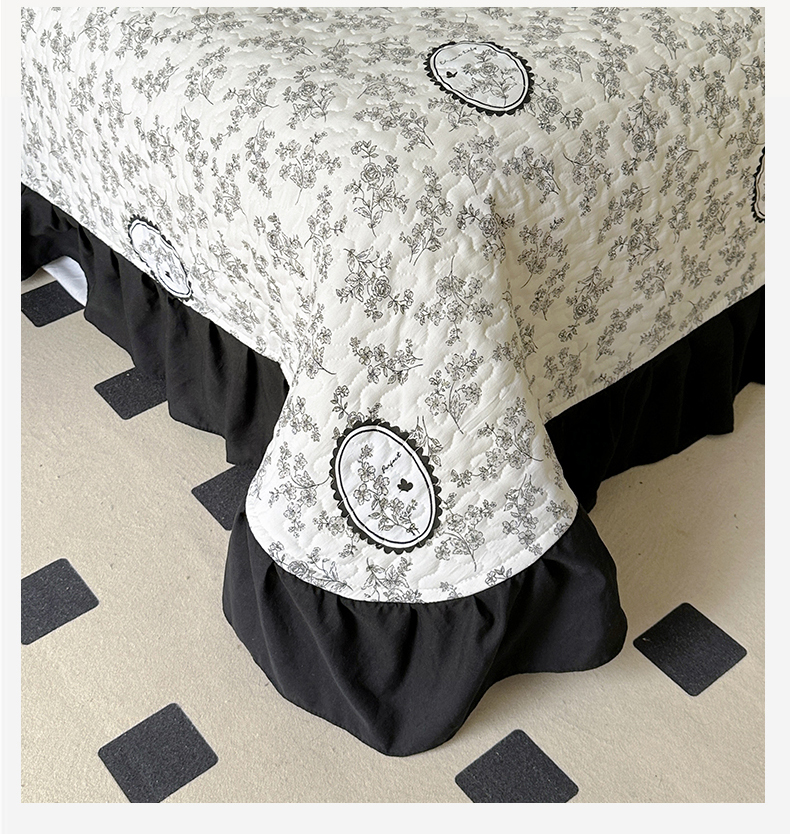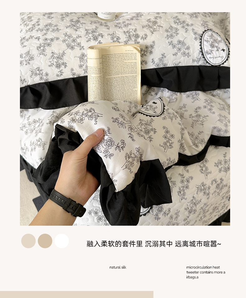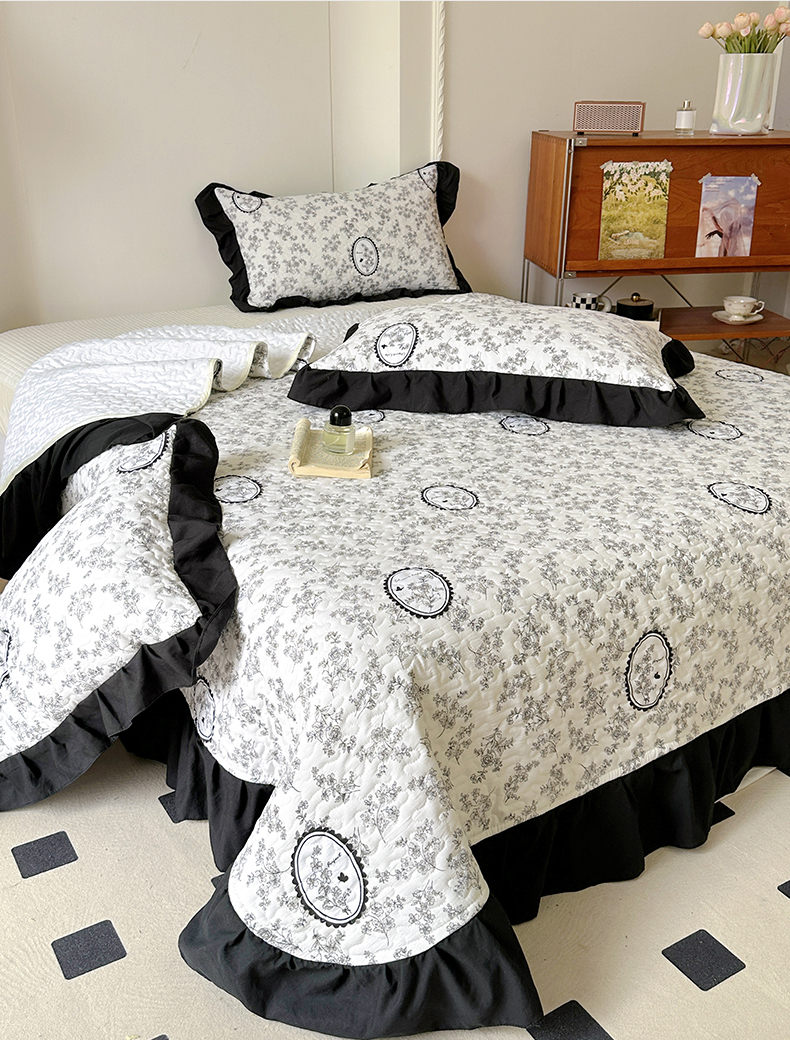当前位置: 91家纺网 > 商品网购 > 床品套件 > 四件套 > 化纤普通四件套 > 韩秀家纺 2025新款 四季跑量款花边夹棉加厚水洗棉泡泡棉糯感印花韩版床盖四件套 镜心缘
