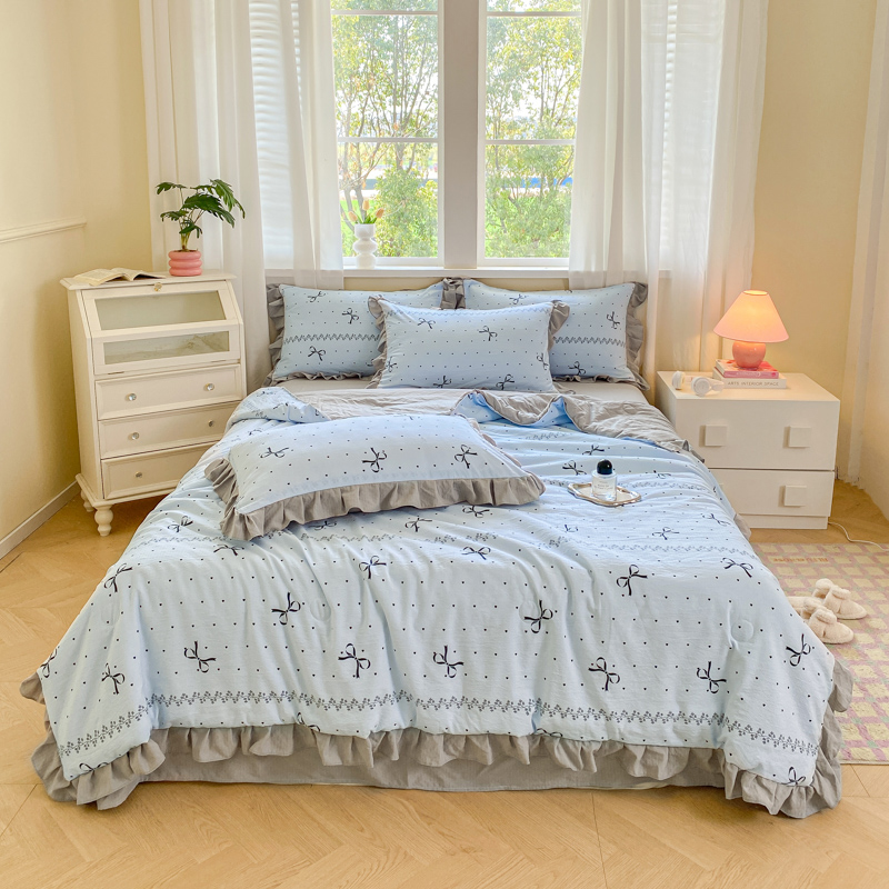 欧尚 2025新款ins风夏被四件套 蓝色蝴蝶结