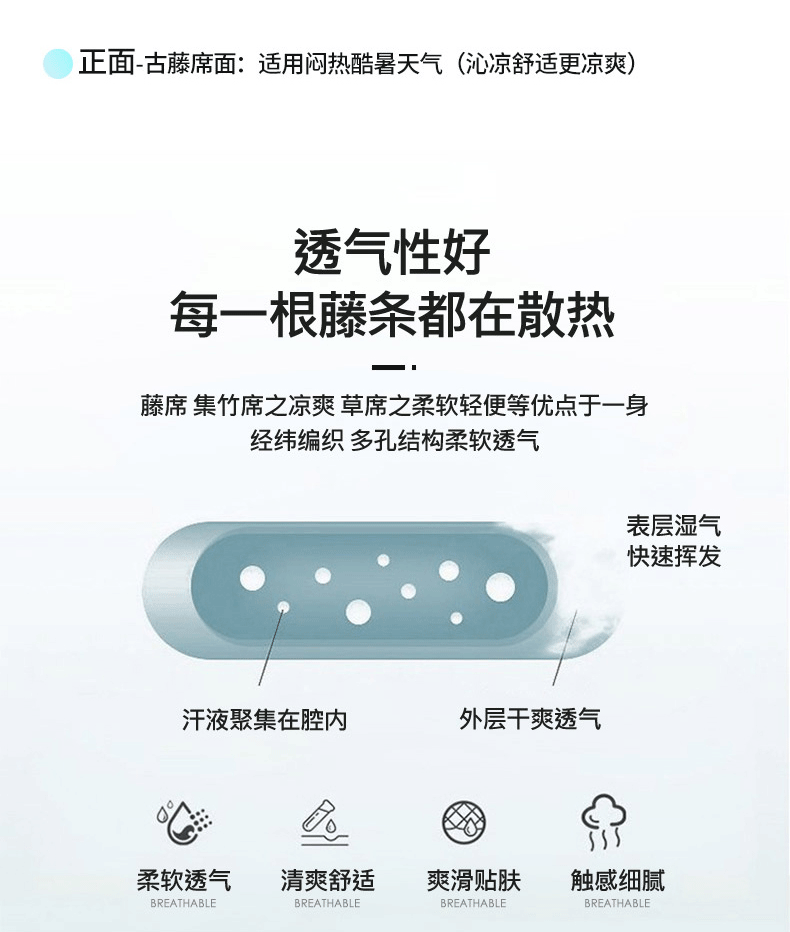 商品名称:(总)凉百百 2025新款亲肤加密透气双面古藤席