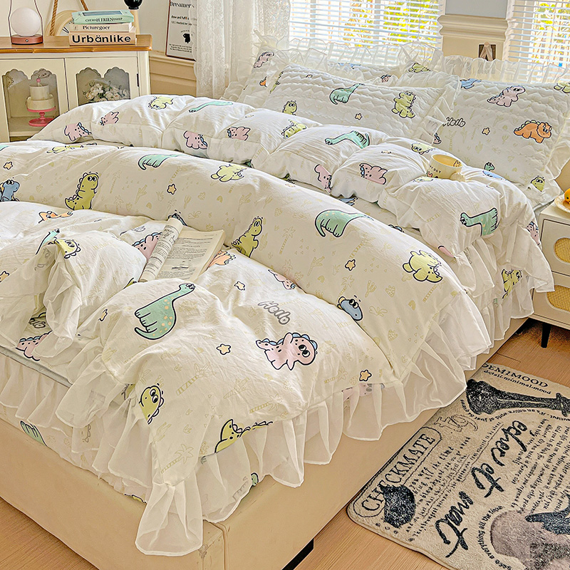 艾橙家纺 2025新款雪纺花边加棉床笠款单品四件套-单被套 恐龙日记