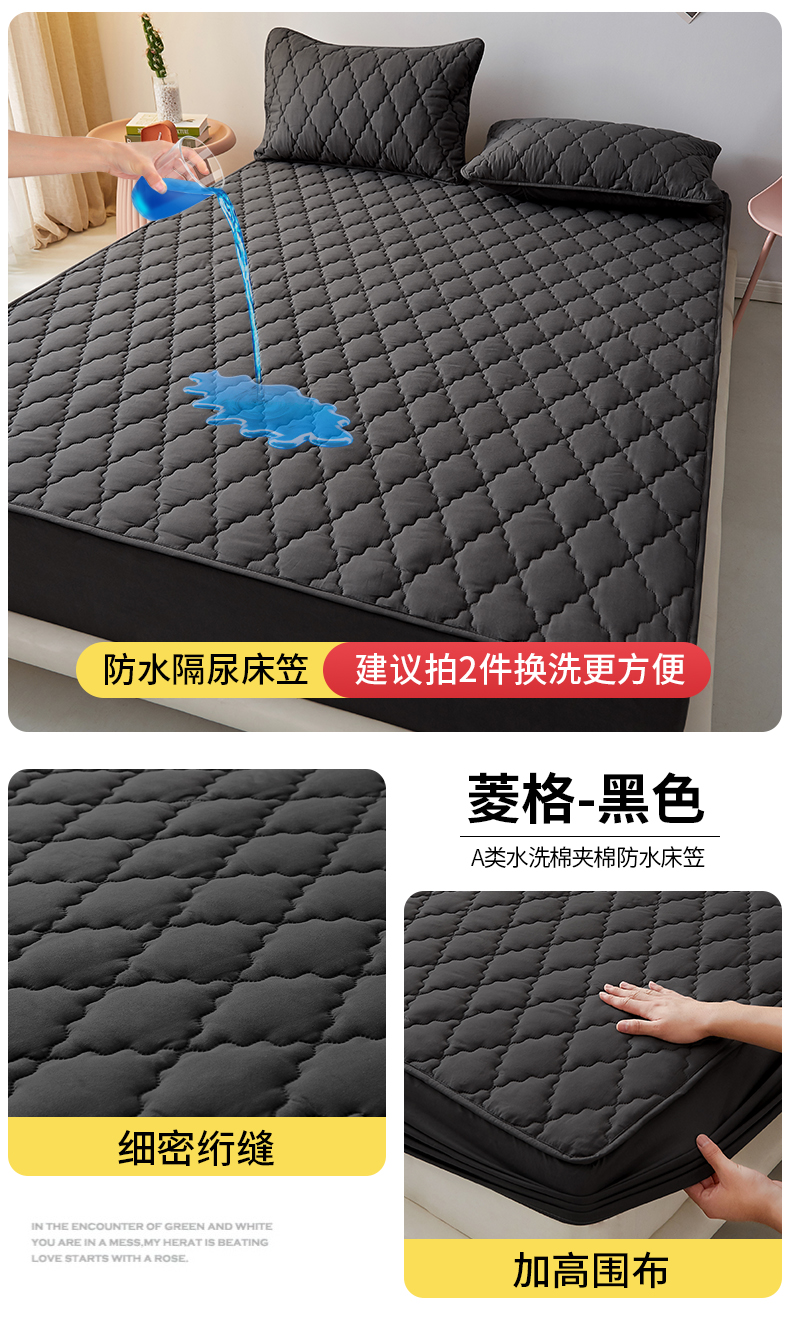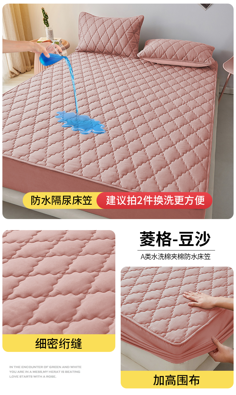 商品名称:(总)盛眠家纺 2025新款水洗棉防水夹棉床笠-菱格系列 Shein、速卖通,亚马逊、Temu床笠单件 跨境外贸
