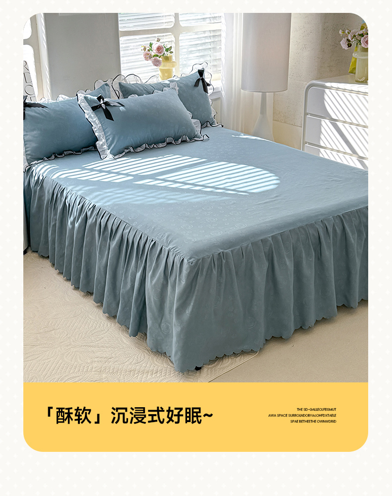 商品名称:莉莉安家纺 2025新款甜心系列磨毛亲肤床裙 甜心-秋波蓝