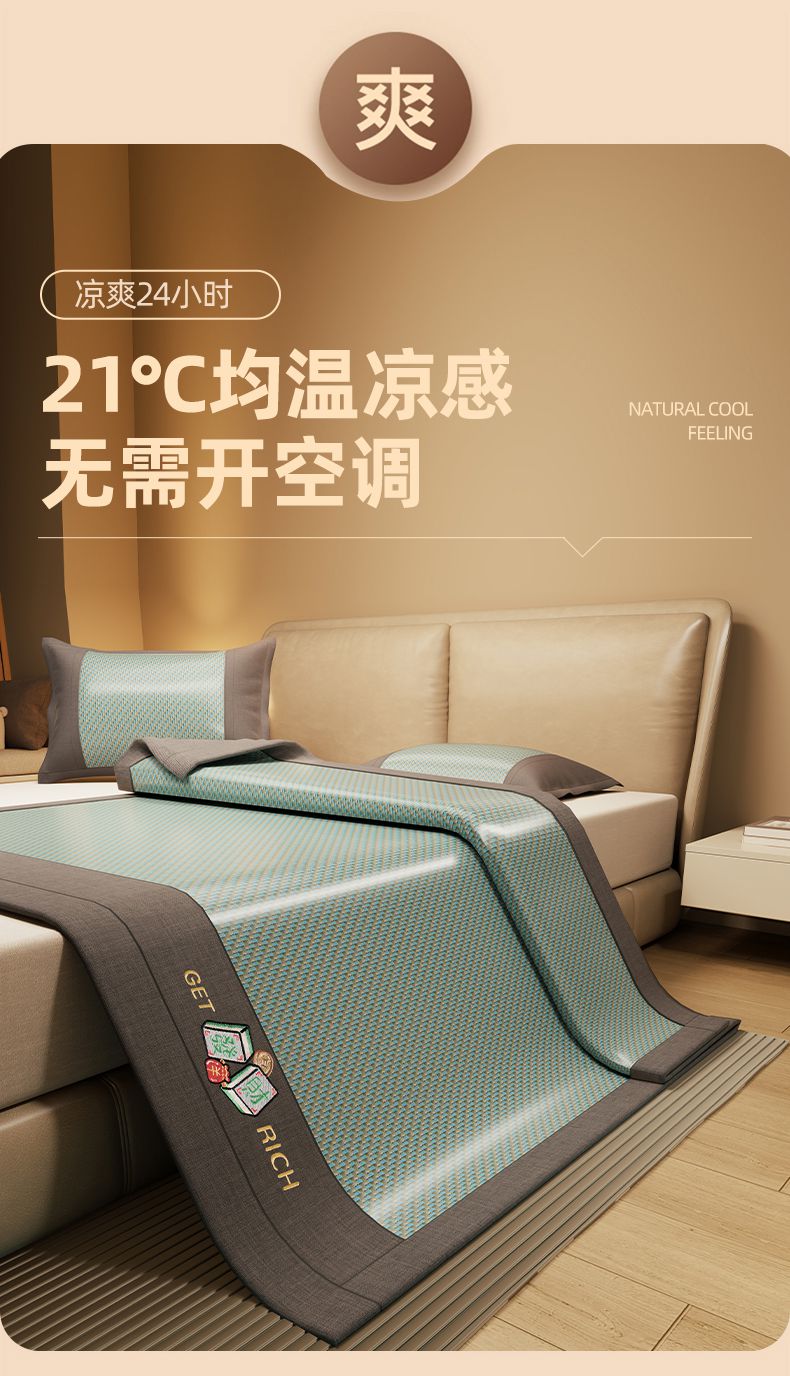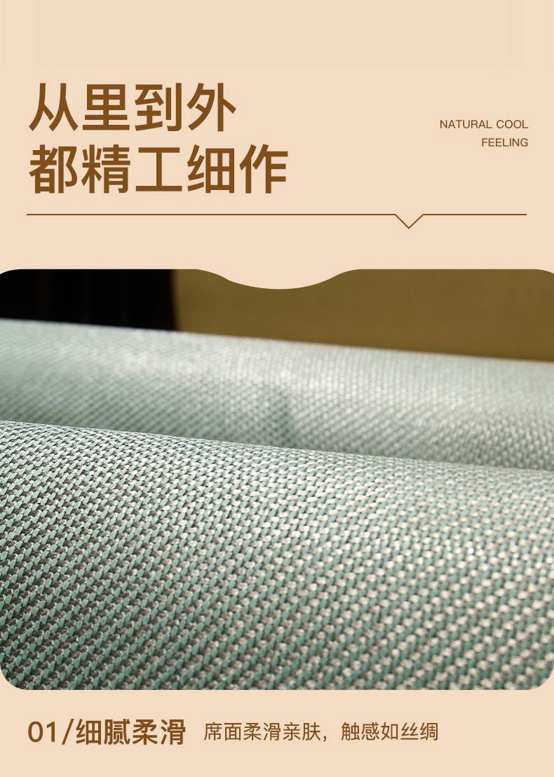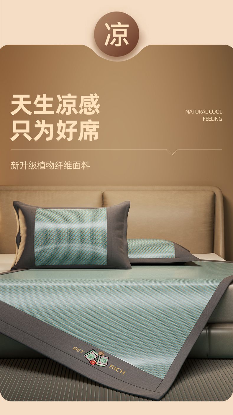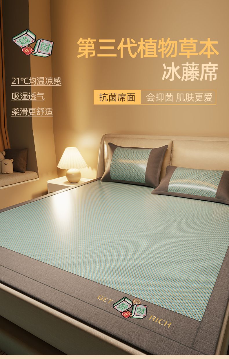 当前位置: 91家纺网 > 商品网购 > 床上用品 > 凉席 > 藤席 > 绒艺席业 2025新款抗菌刺绣凉感冰藤席 发财-松木绿