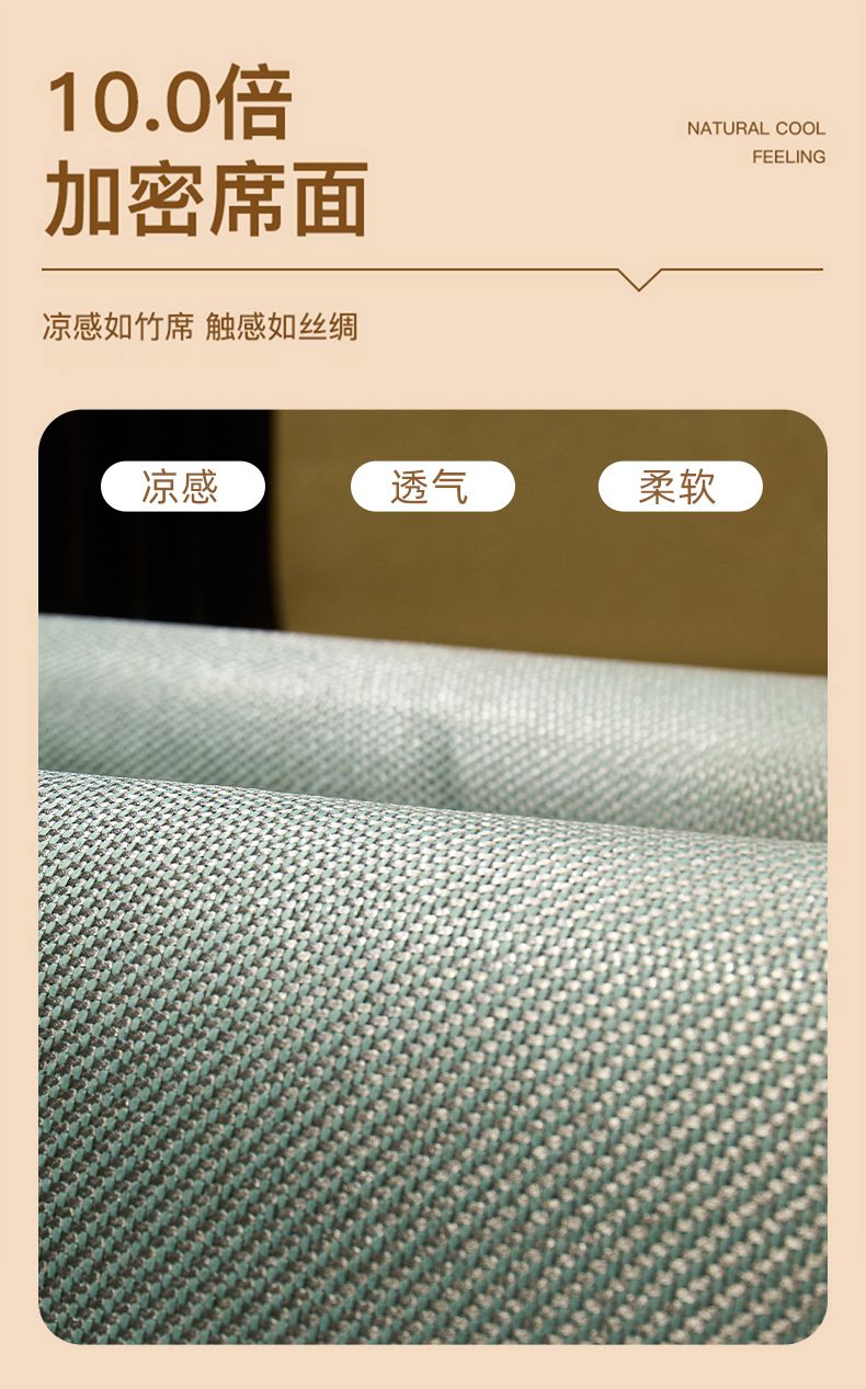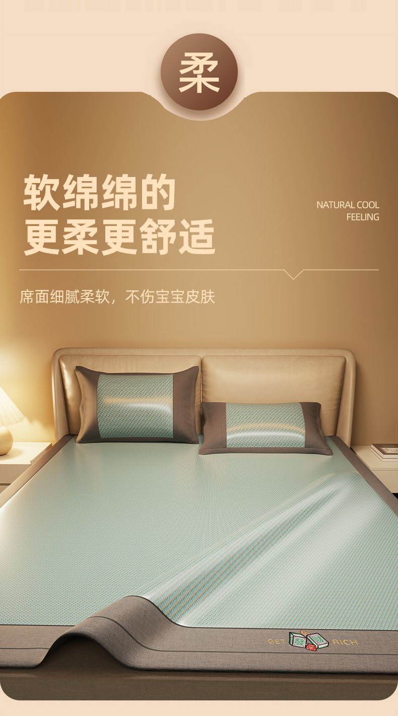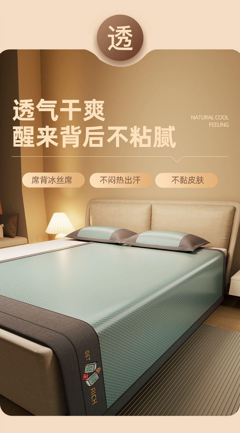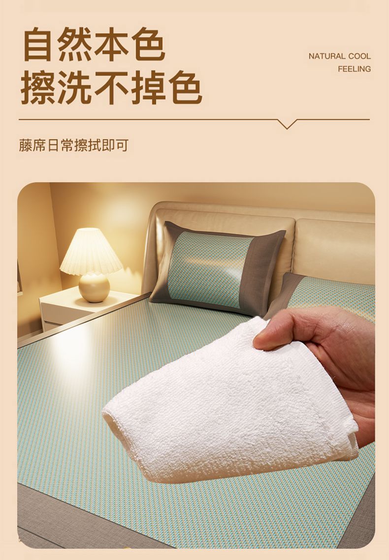 当前位置: 91家纺网 > 商品网购 > 床上用品 > 凉席 > 藤席 > 绒艺席业 2025新款抗菌刺绣凉感冰藤席 发财-松木绿