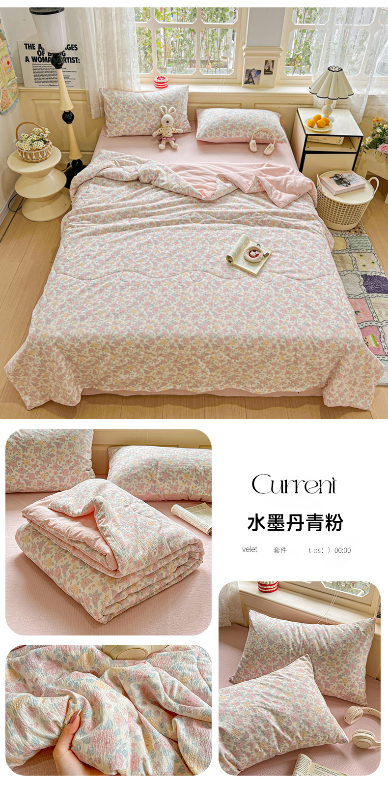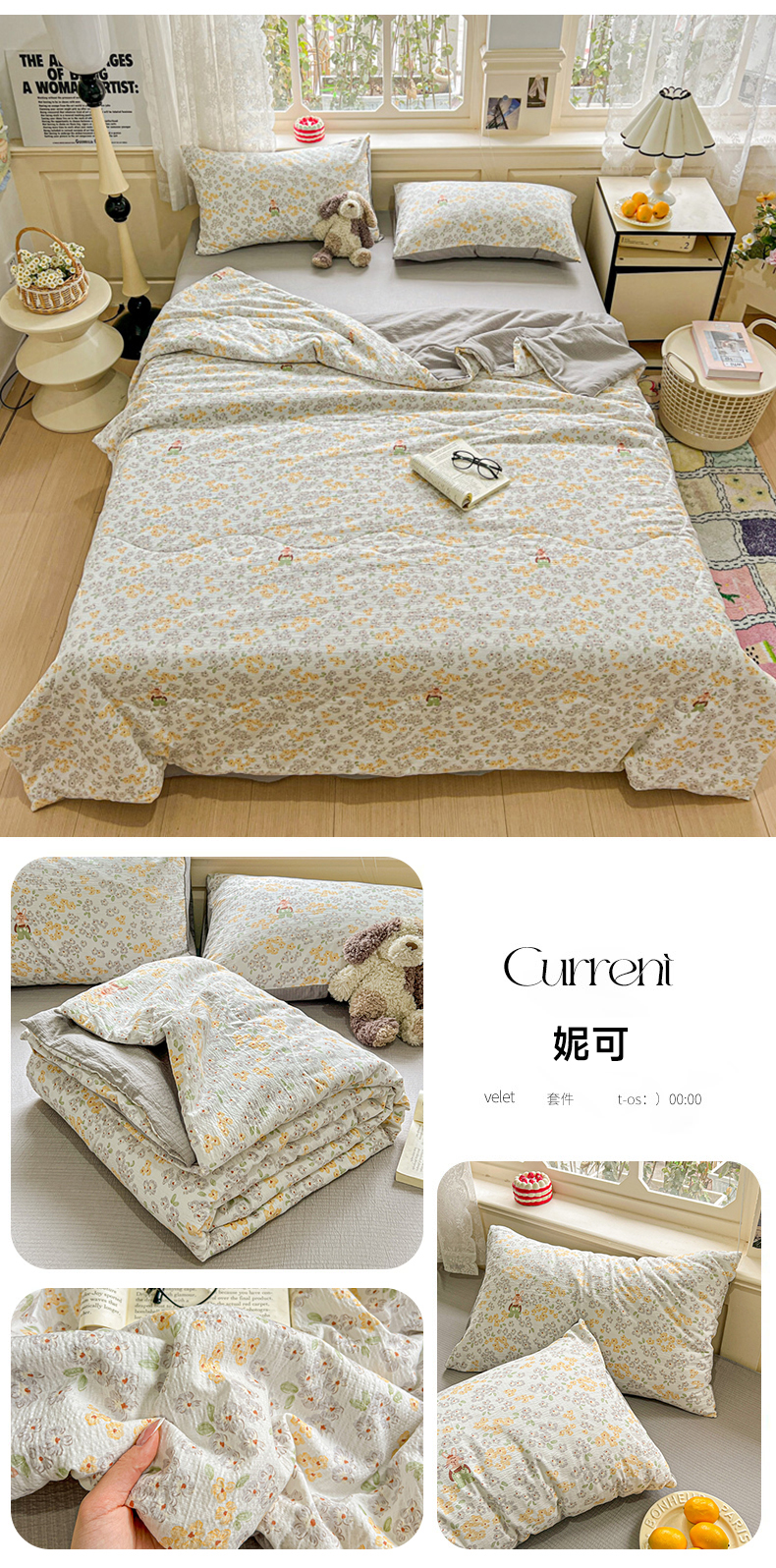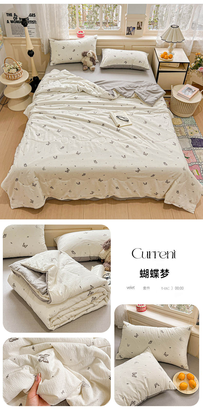 当前位置: 91家纺网 > 商品网购 > 床品套件 > 四件套 > 夏被四件套 > 一比一家纺 2025新款云感皱皱纱简单款夏被夏凉被空调被四件套 组合图仅做展示