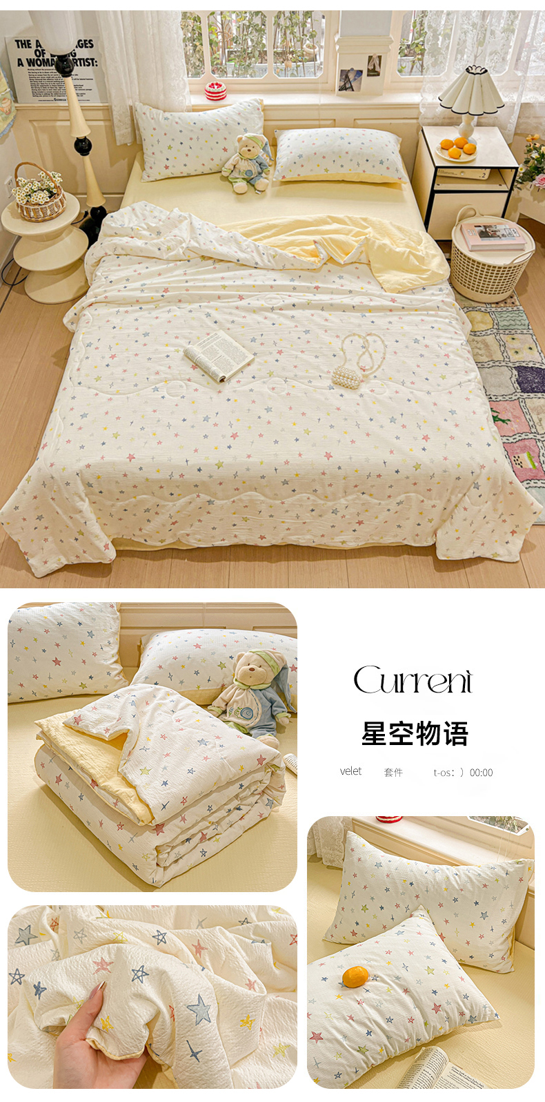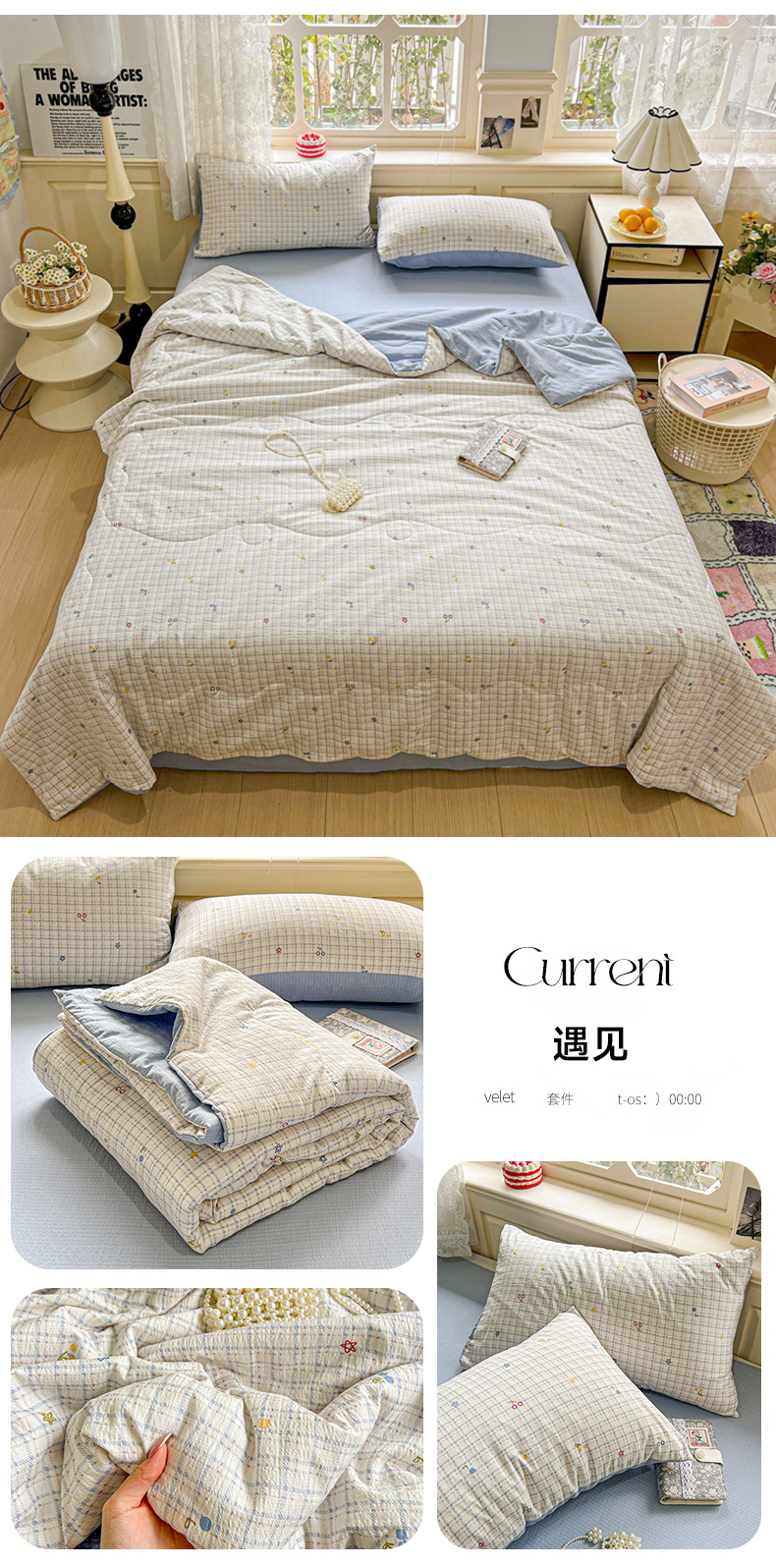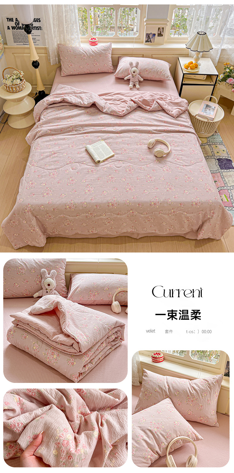 当前位置: 91家纺网 > 商品网购 > 床品套件 > 四件套 > 夏被四件套 > 一比一家纺 2025新款云感皱皱纱简单款夏被夏凉被空调被四件套 组合图仅做展示