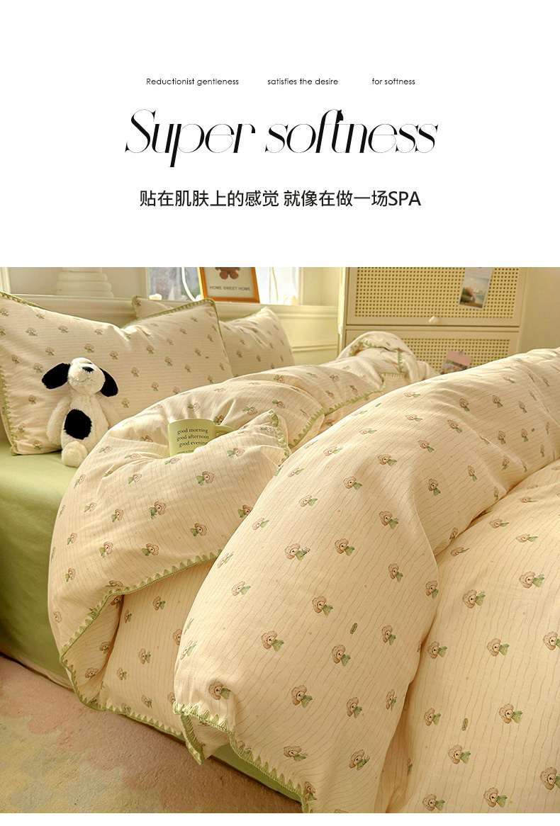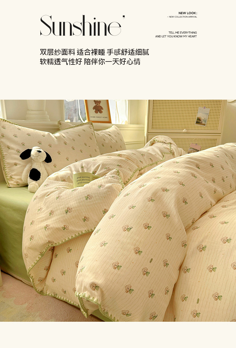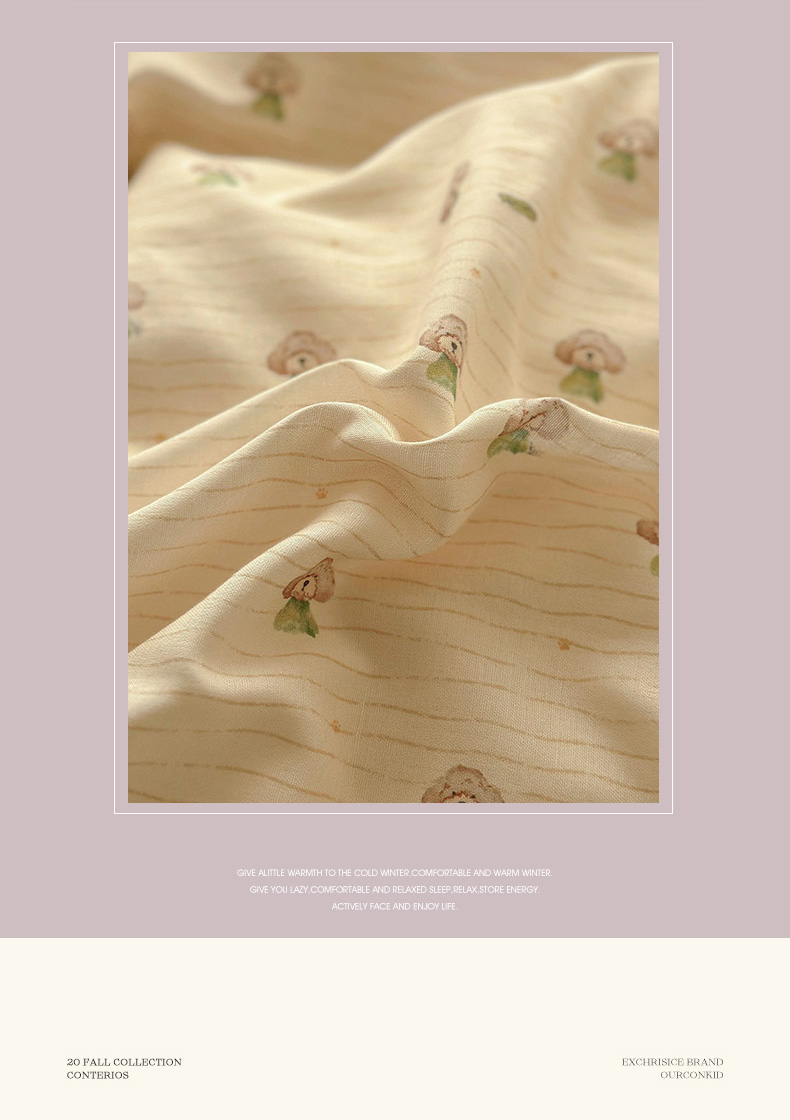 当前位置: 91家纺网 > 商品网购 > 床品套件 > 四件套 > 双层纱四件套 > (提供买家秀 爆款花型 不断货)2025新款A类全棉双层纱四件套 布丁狗