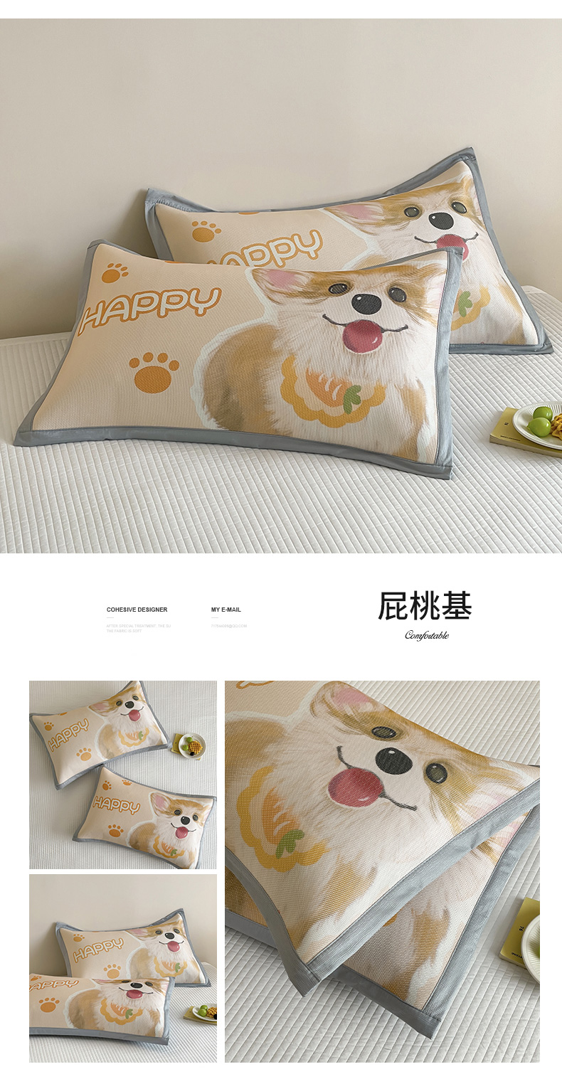 商品名称:安哆啦家纺 2025新款A类大版印花冰藤儿童幼儿园卡通萌宠系列凉席单枕套 屁桃基