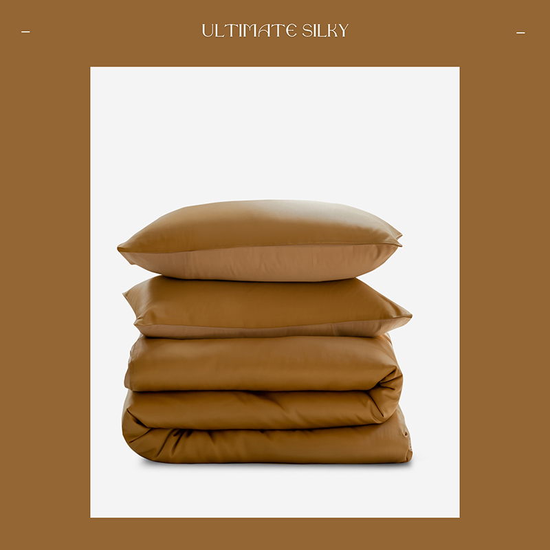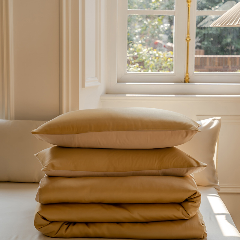 咏绒家纺工厂店 2025新款60支奥地利兰精天丝单品系列--单被套 芝士黄-沙茶色