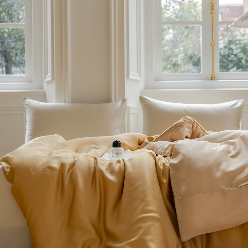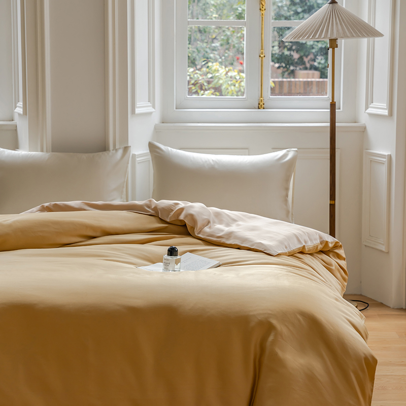 商品名称:咏绒家纺工厂店 2025新款60支奥地利兰精天丝单品系列--单被套 芝士黄-沙茶色