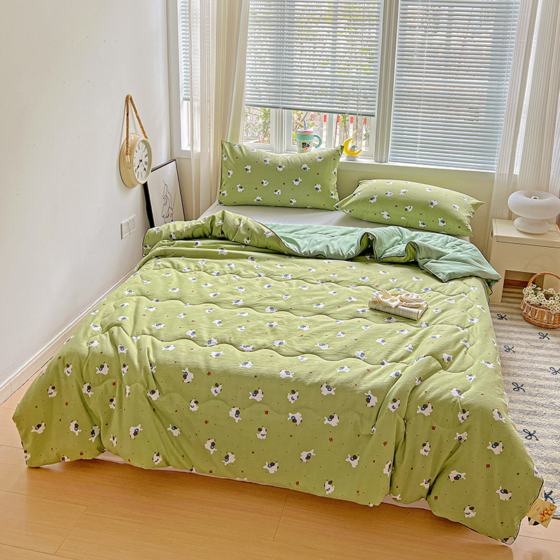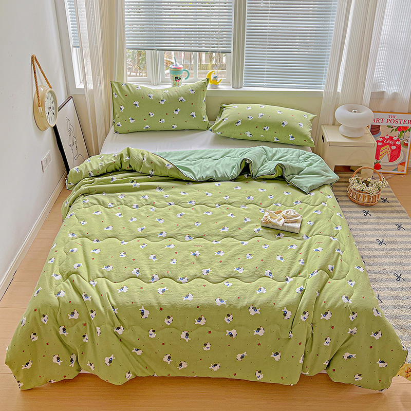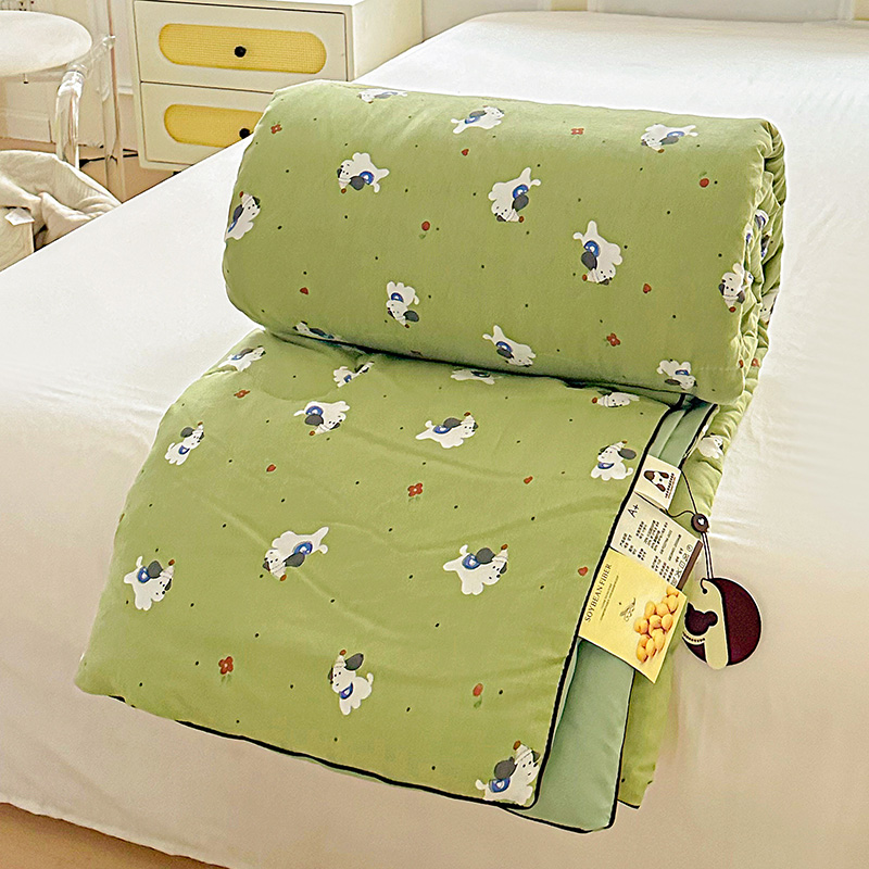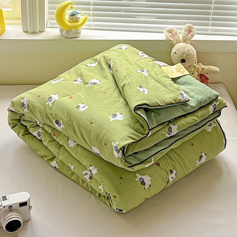 玉海棠家纺 2025新款水洗皱皱纱印花夏被 被子被芯 一只绿狗