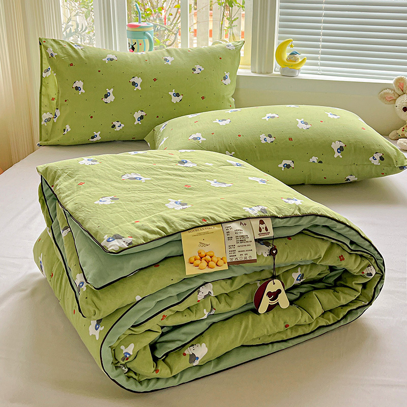 商品名称:玉海棠家纺 2025新款水洗皱皱纱印花夏被 被子被芯 一只绿狗