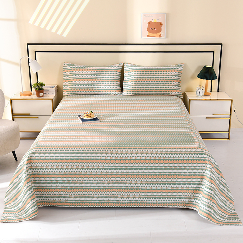 望淮家纺 2025新款老粗布凉席床单三件套 绿条