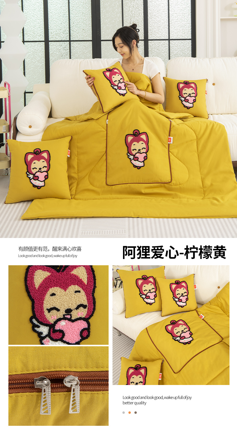 商品名称:宝马家纺(原梦童画)2025新款毛巾绣阿狸四季款抱枕被 阿狸爱心-柠檬黄