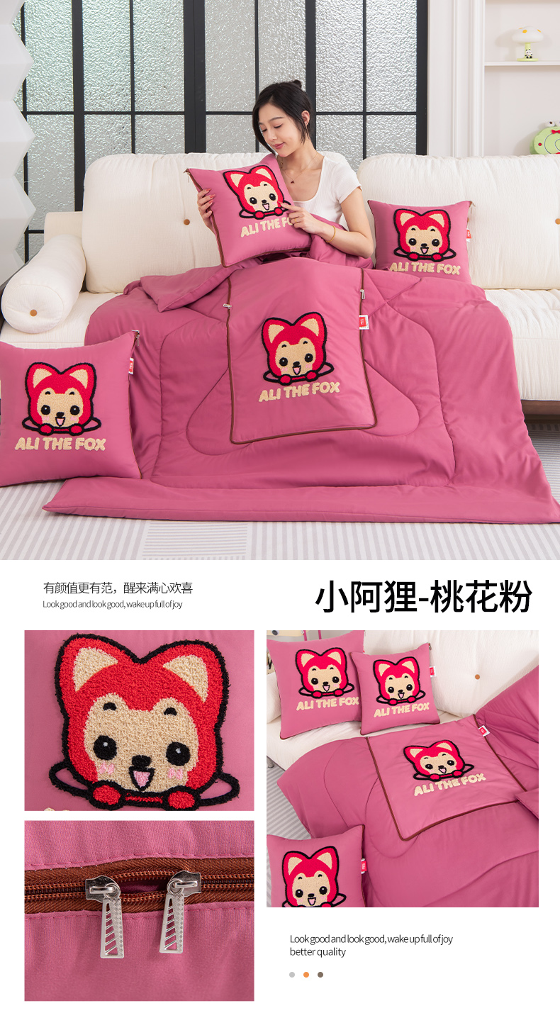 商品名称:宝马家纺(原梦童画)2025新款毛巾绣阿狸四季款抱枕被 小阿狸-桃花粉