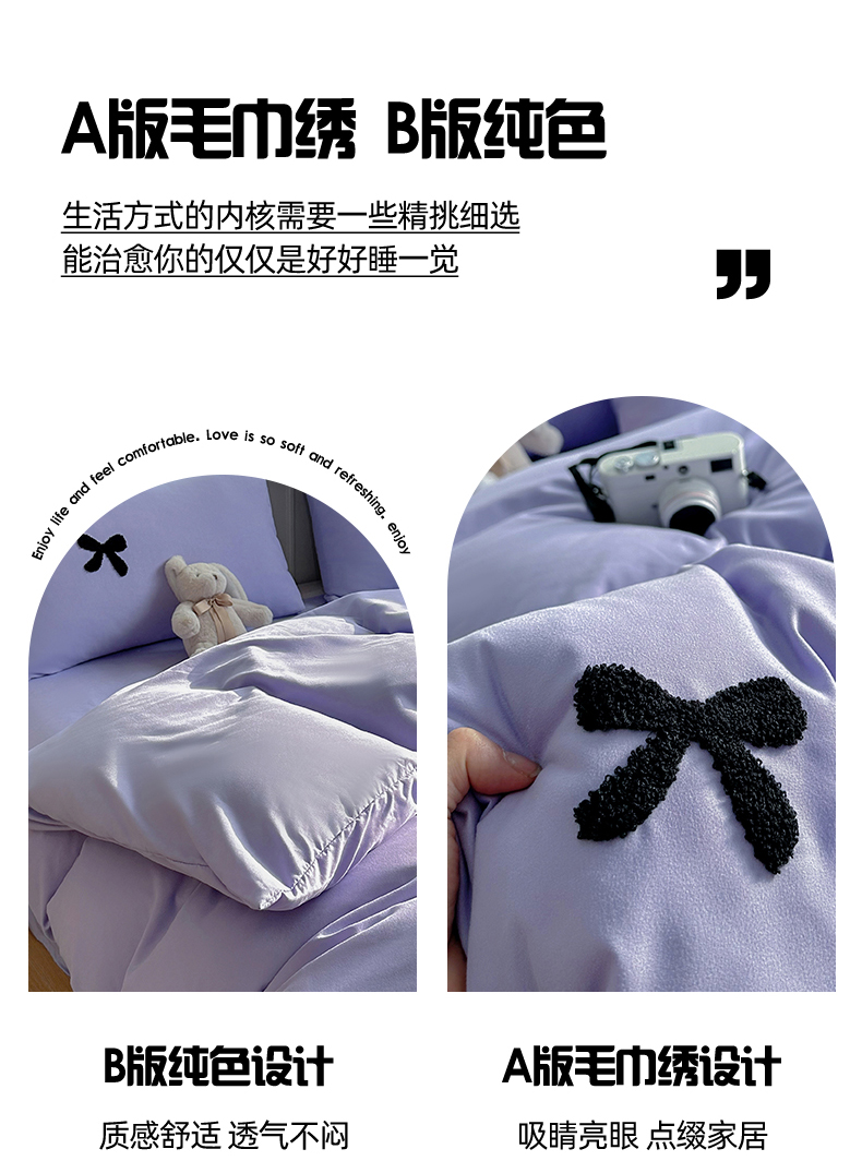当前位置: 91家纺网 > 商品网购 > 床品套件 > 四件套 > 水洗棉四件套 > 迪拜家纺 2025新款加厚水洗棉四件套-蝴蝶结 蝴蝶结-紫