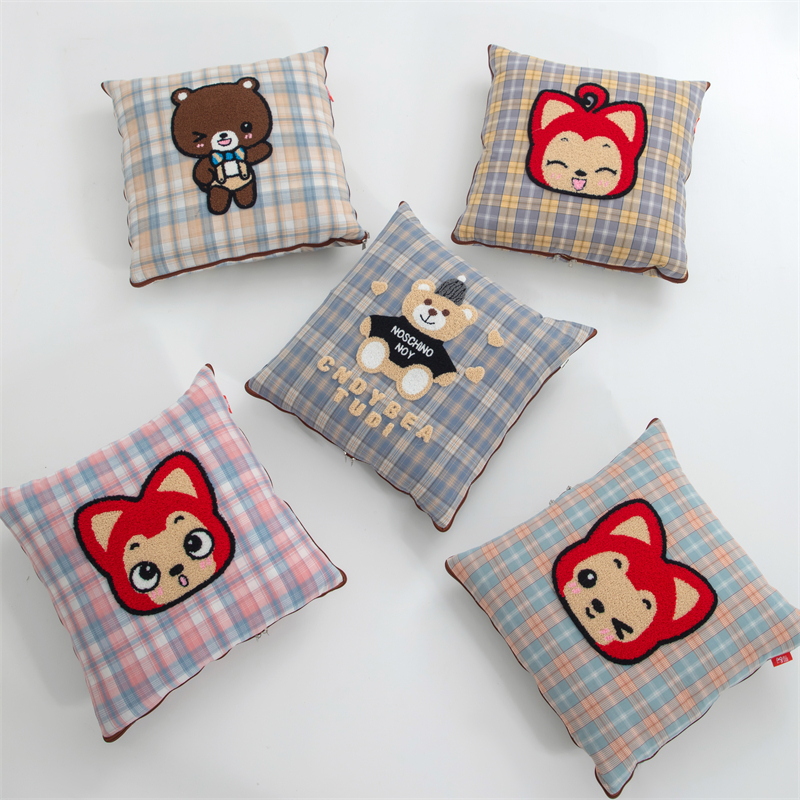 (总)宝马家纺(原梦童画) 2024新款泰迪熊毛巾绣联名款减压式加厚抱枕毯,豆沙粉,粉色,黑色,灰色,绿色,柠檬黄,天空蓝