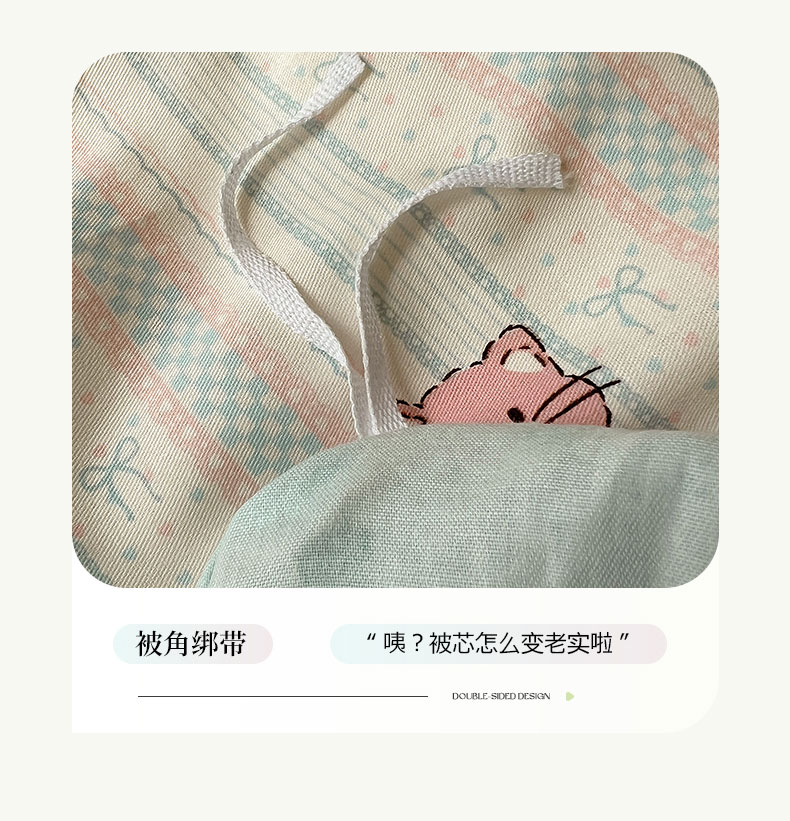 六巷胡同 2025新款40S全棉纯棉INS童趣可爱风卡通嵌绳款四件套 嵌绳甜品咖啡猫