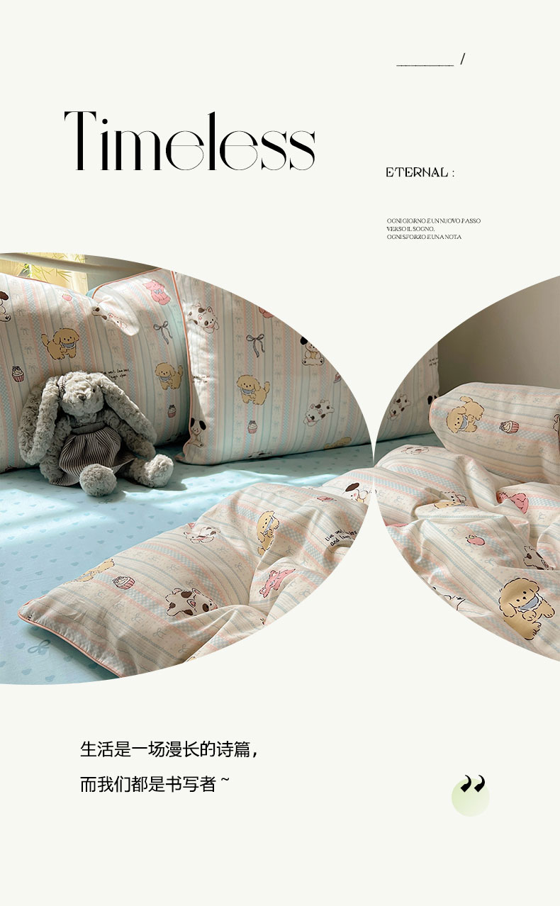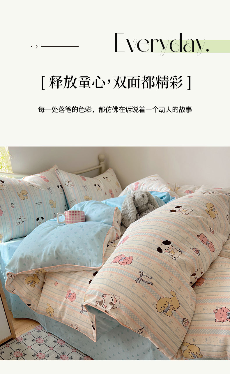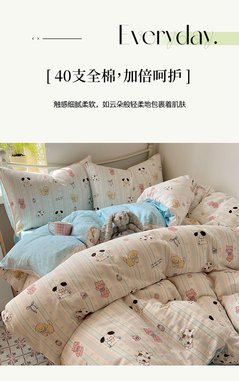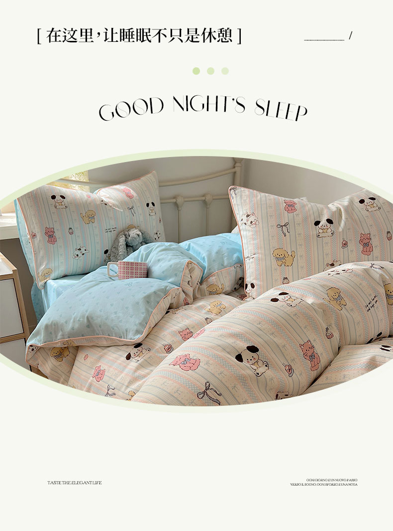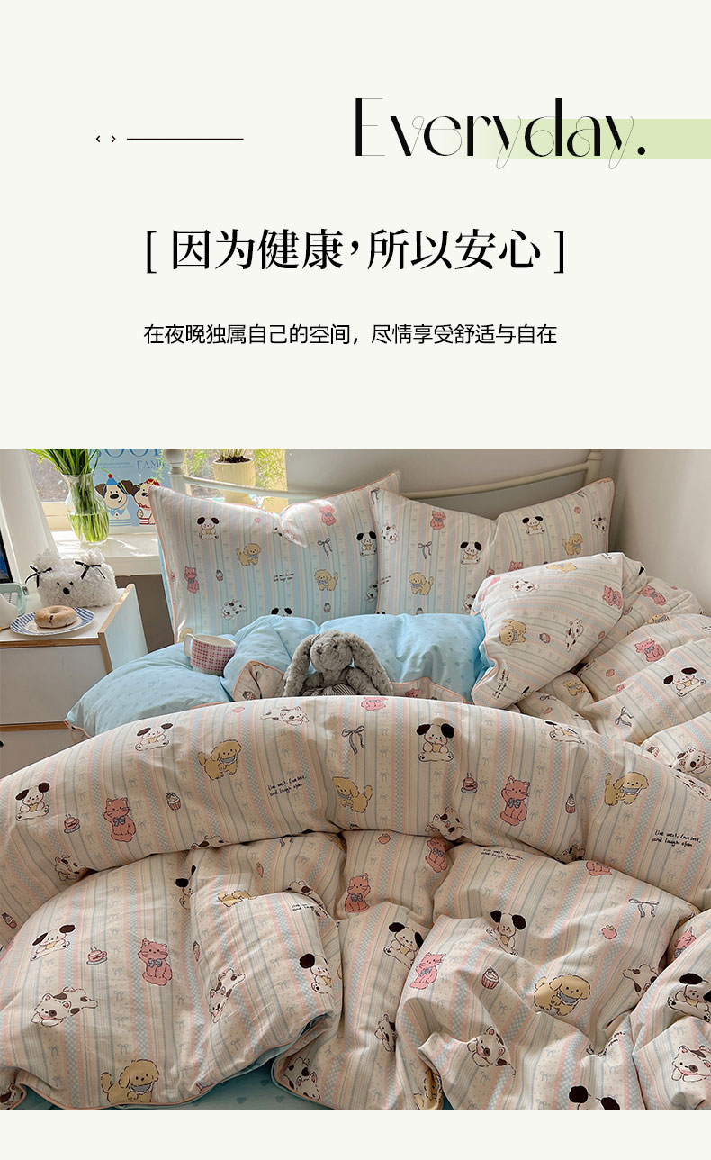 (总)六巷胡同 2025新款 INS减龄可爱风卡通全棉四件套第五系(森林音乐会系列),波点嘟嘟猫,点点面包犬,调皮蔷薇狗,哈喽泡芙猫,蓝格插画犬,森林音乐会