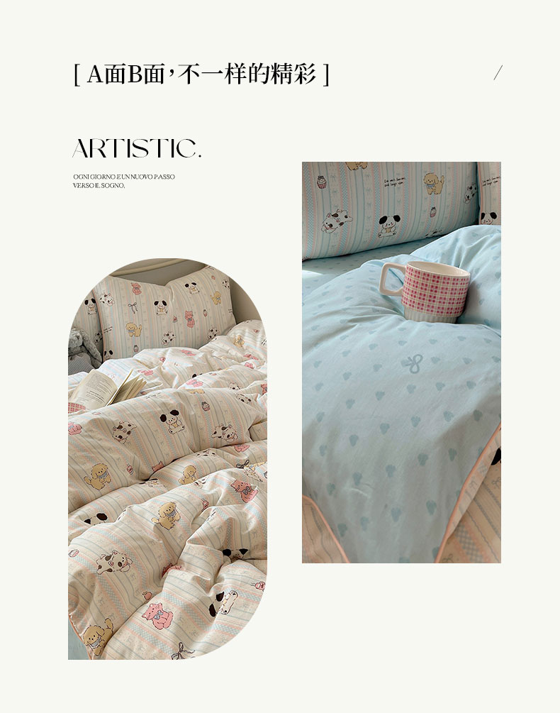 (总)六巷胡同 2025新款INS卡通童趣混搭风全棉四件套第二系,混搭-蛋糕围兜熊,混搭-奶油酣睡熊,混搭-奈斯羞羞狗,混搭-小蓝格甜点,混搭-雪糕哈皮熊,混搭-月亮睡睡熊