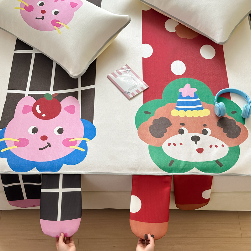 (总)乐童家纺 2026新款全棉网红直播爆款吊边一字绣工艺款四件套,豹纹奶喵-蓝,超能小柴,春日兔影,蜂蜜熊熊,红茶兔兔,凯蒂软糖咖,快乐小熊,腊肠小狗,帽子柯基,梦幻童乡,少女蝴蝶结,甜莓手记,微花耳耳-粉,星星柯基,珍妮小兔
