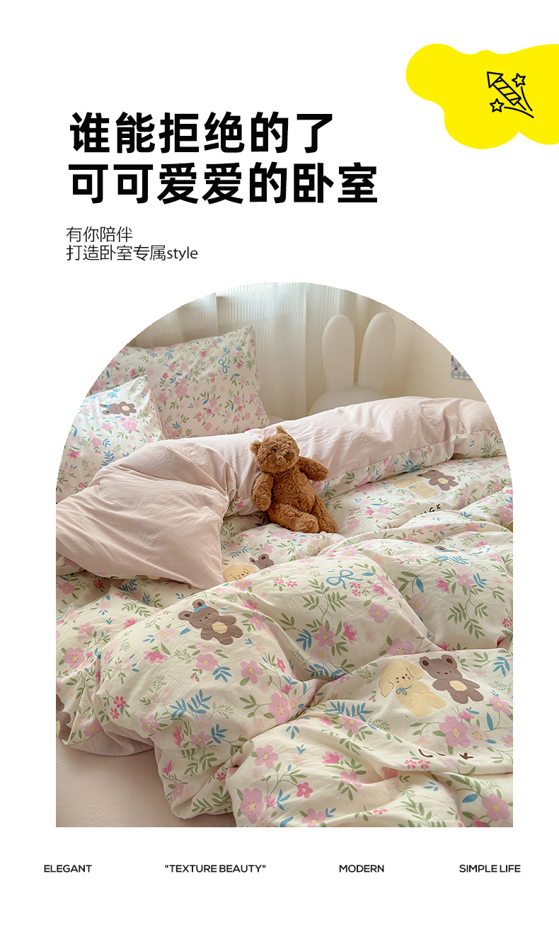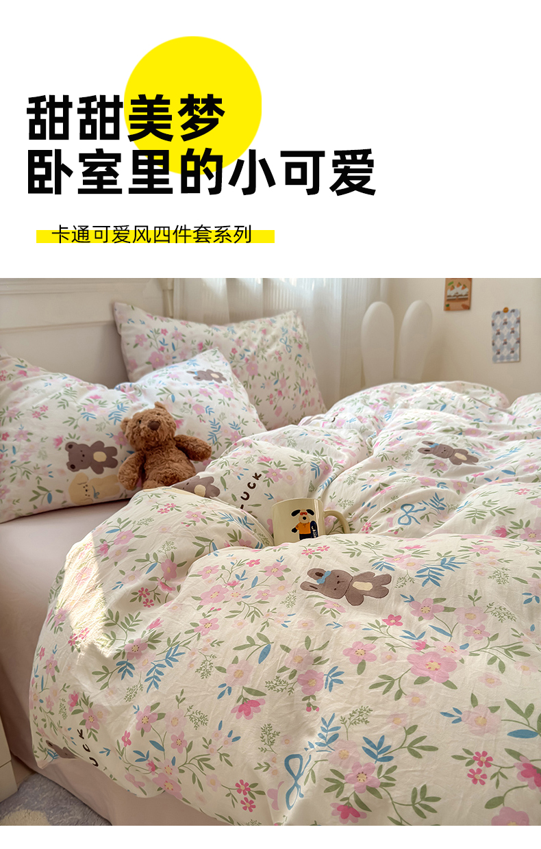 当前位置: 91家纺网 > 商品网购 > 床品套件 > 四件套 > 沐芷 2025 A类软萌水洗棉卡通印花四件套床上用品三件套被套床单 花仙兔兔