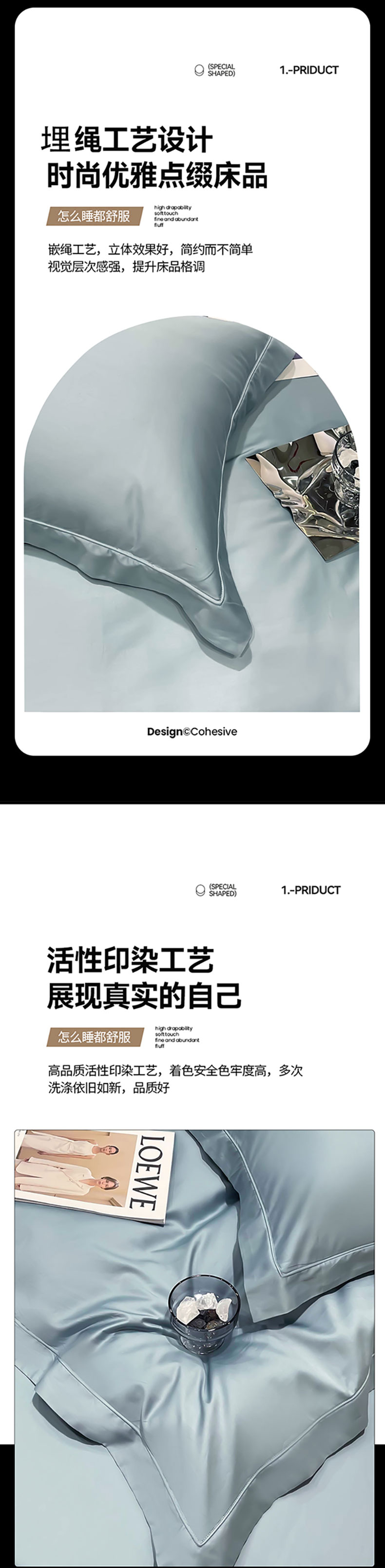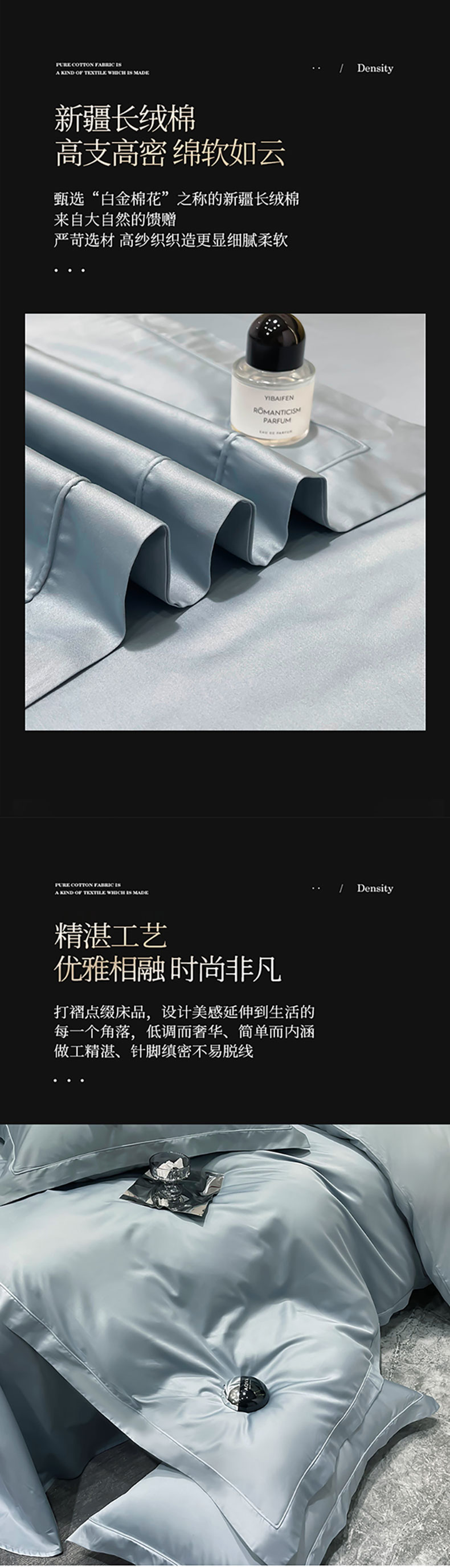 商品名称:洽想家 2025新款100支新疆长绒棉纯色埋绳款四件套 浅石蓝