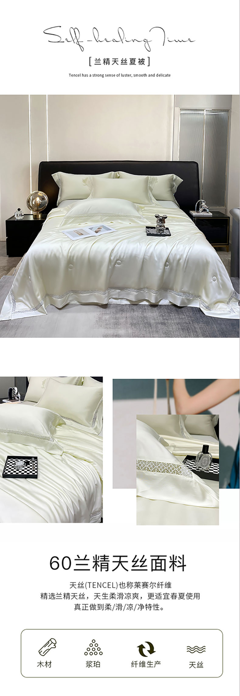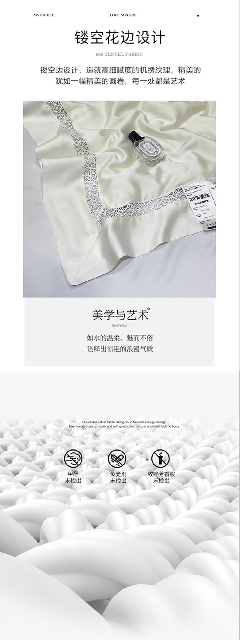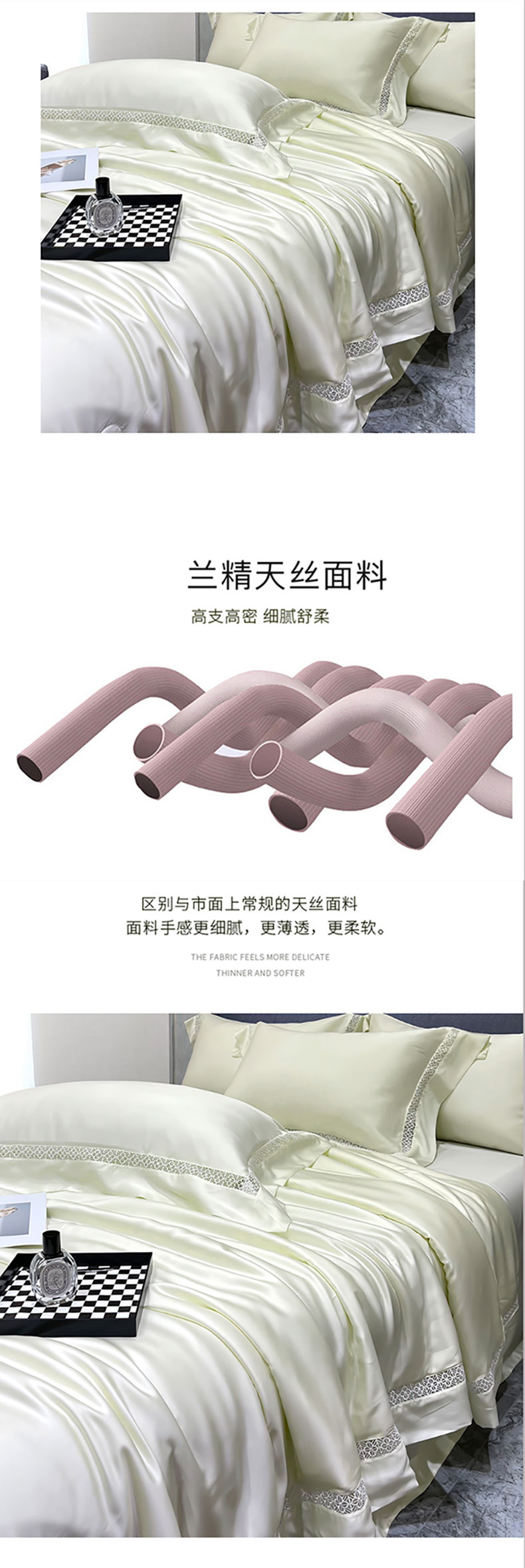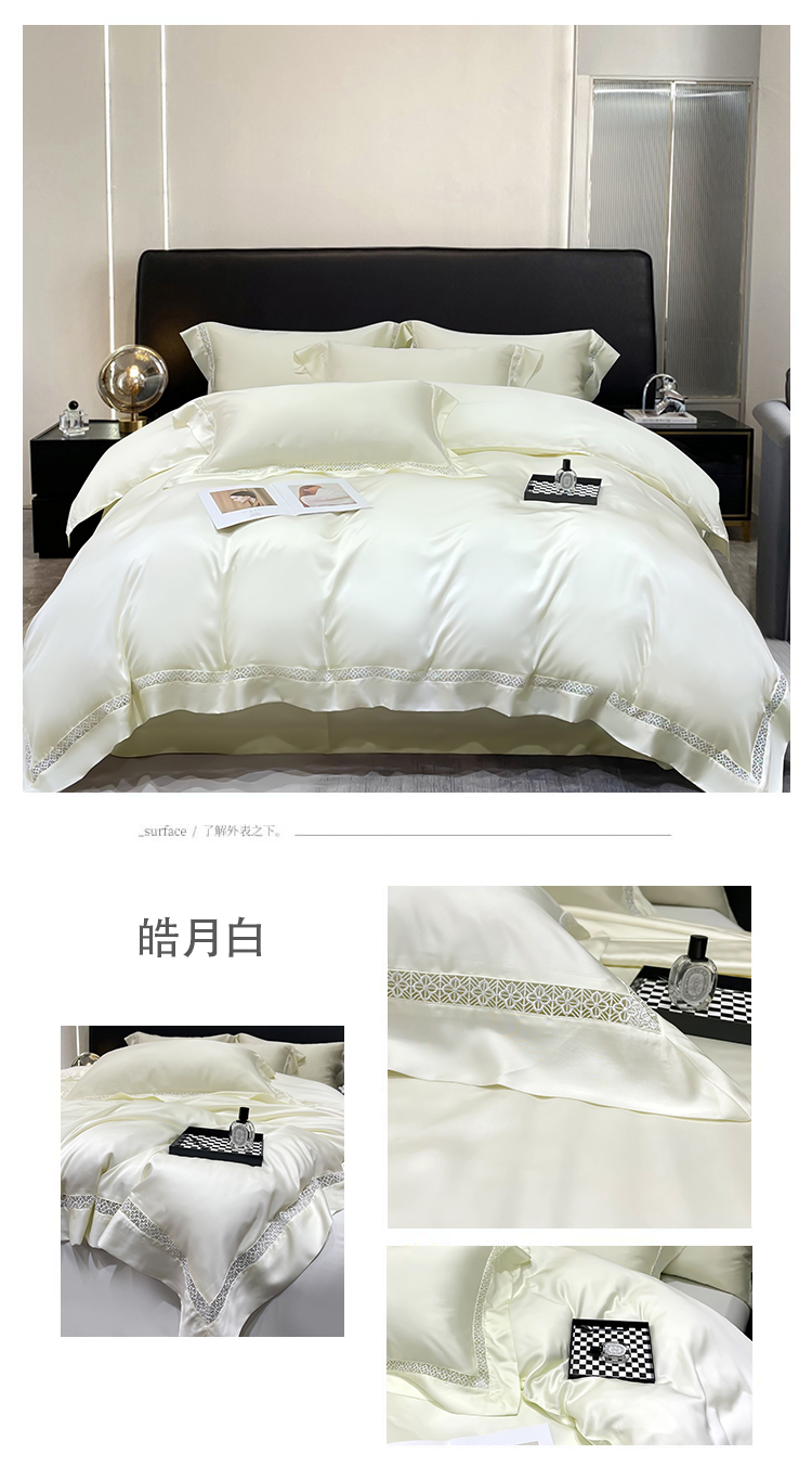 商品名称:洽想家 2025新款80支天丝镂空瑾系列夏被四件套 瑾-皓月白