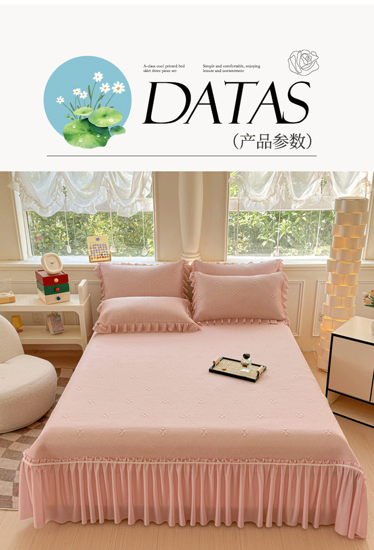 (总)漫布云2025新款A类甄选PE凉感丝花边床裙款冰豆豆凉席床盖三件套春夏韩版公主风水洗棉蕾丝夏被,梦幻—薄荷绿 ,梦幻—梦幻蓝 ,梦幻—香芋紫 ,梦幻—樱花粉
