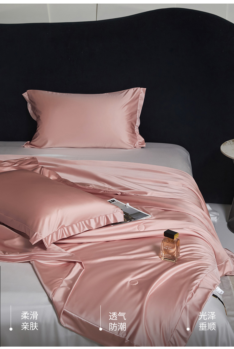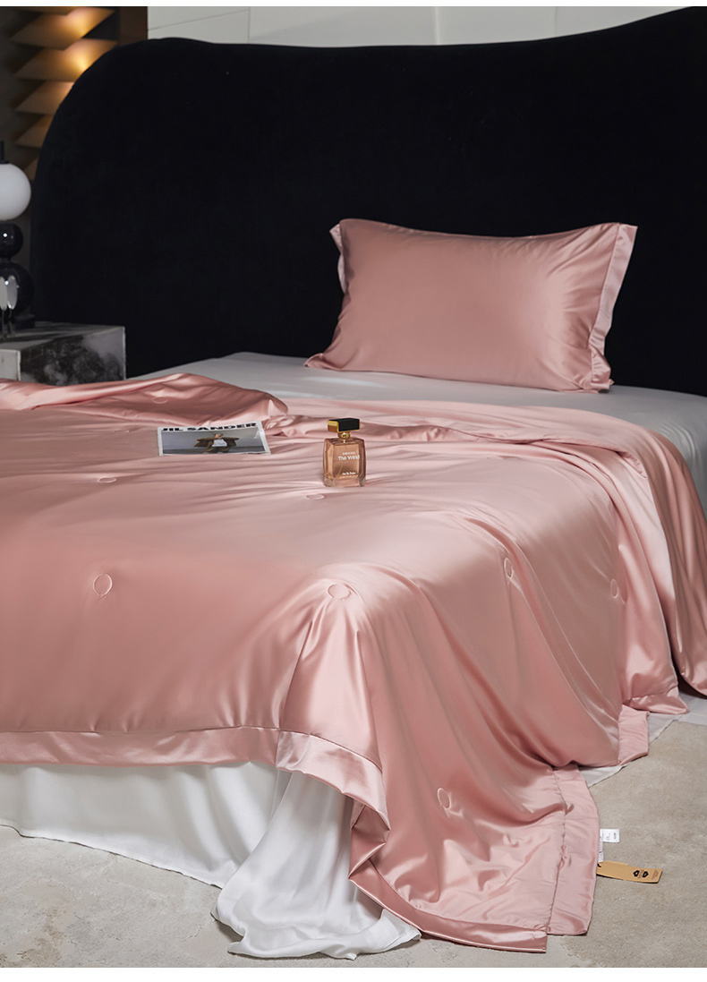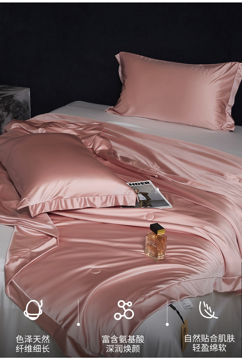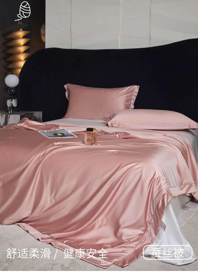 商品名称:头等舱 2025新款水光缎冰肌锦氨A类可水洗100%有机榨蚕丝夏被带礼盒 蔷薇粉
