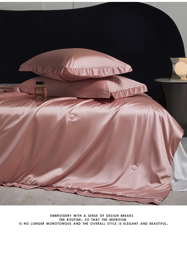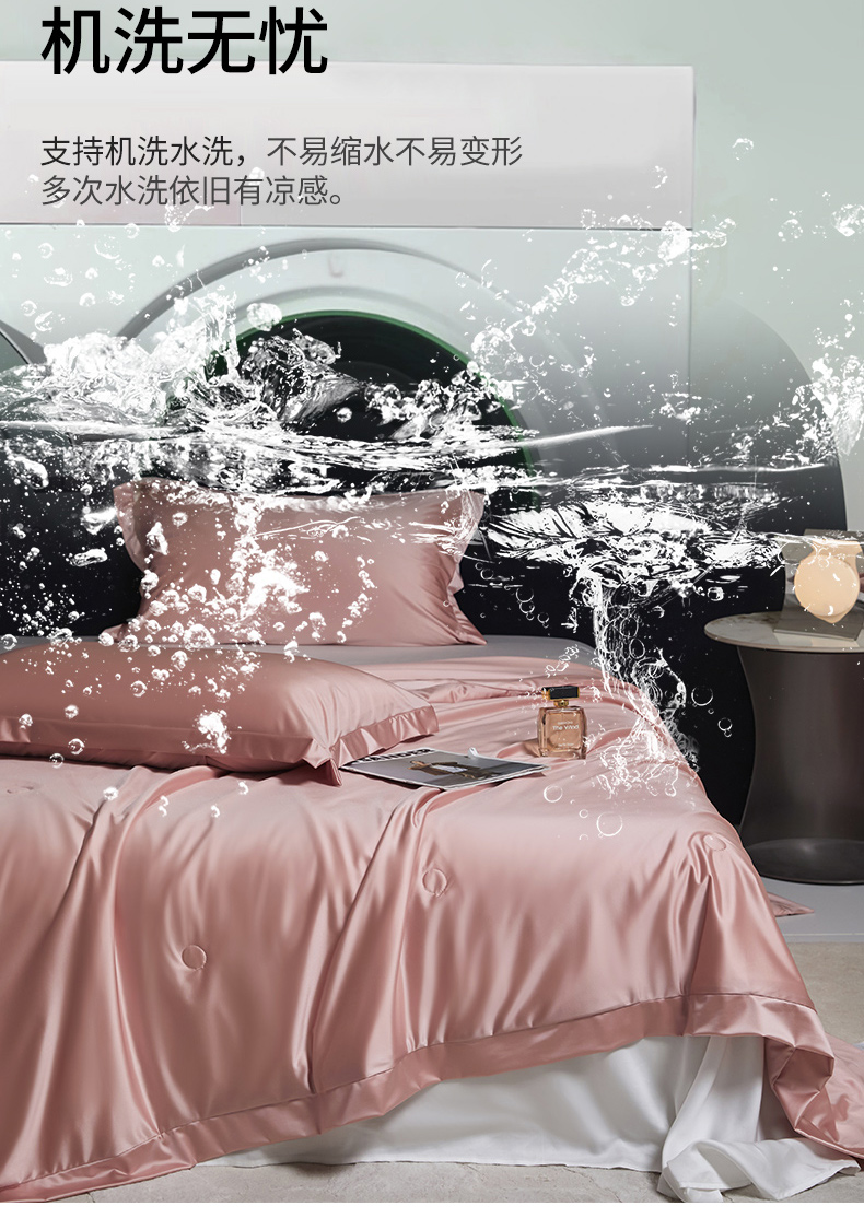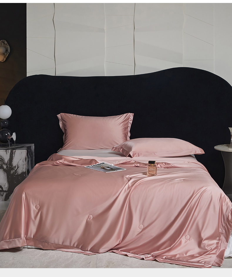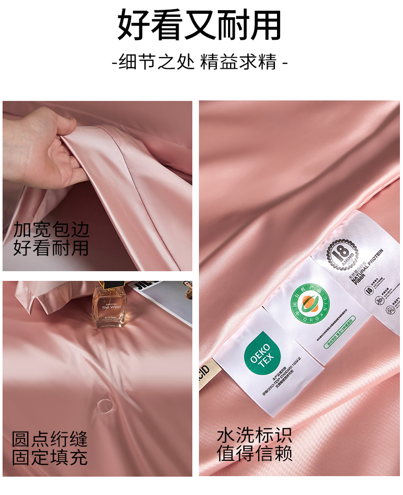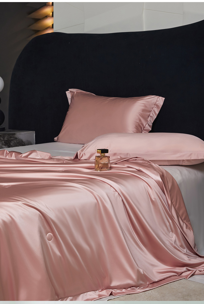 商品名称:头等舱 2025新款水光缎冰肌锦氨A类可水洗100%有机榨蚕丝夏被带礼盒 蔷薇粉