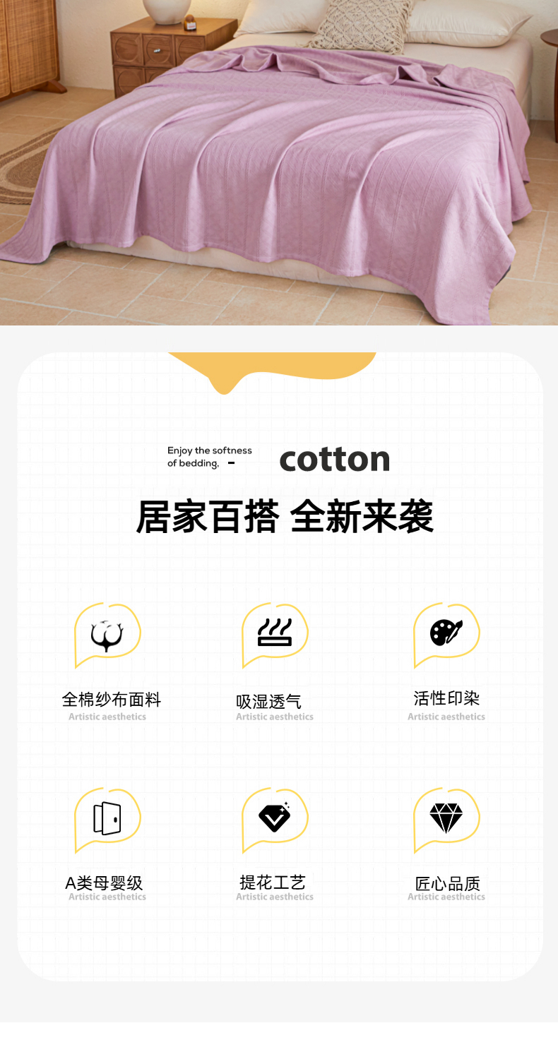 商品名称:悦然毛巾被 2025新款棉缇锦梦全棉夏用毛巾被盖毯 棉缇锦梦浅紫