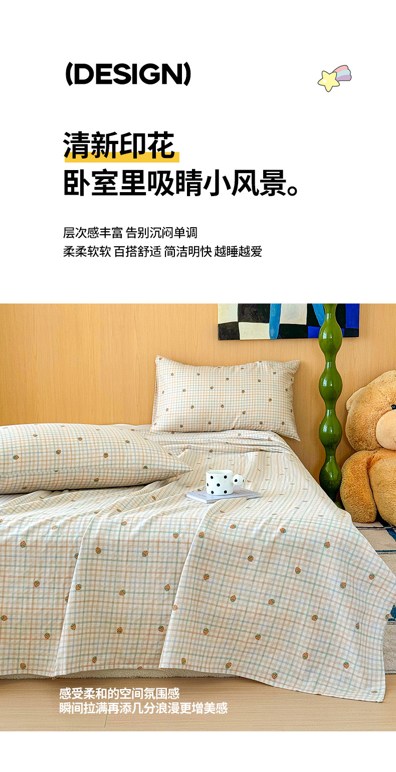 (总)感遇家纺 2025新款小清新甜系全棉四件套,百丽兔,波点小女孩,点点小狗,复古樱桃,格子草莓,格子樱桃,花间牧歌,灰条猫咪,奶绿,宁夏,森林小熊猫,甜心波点