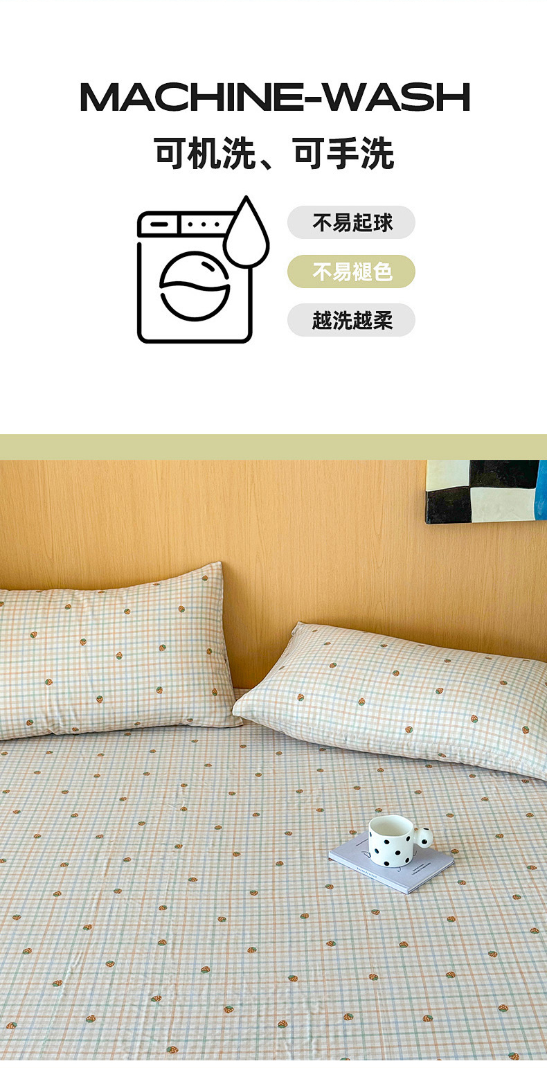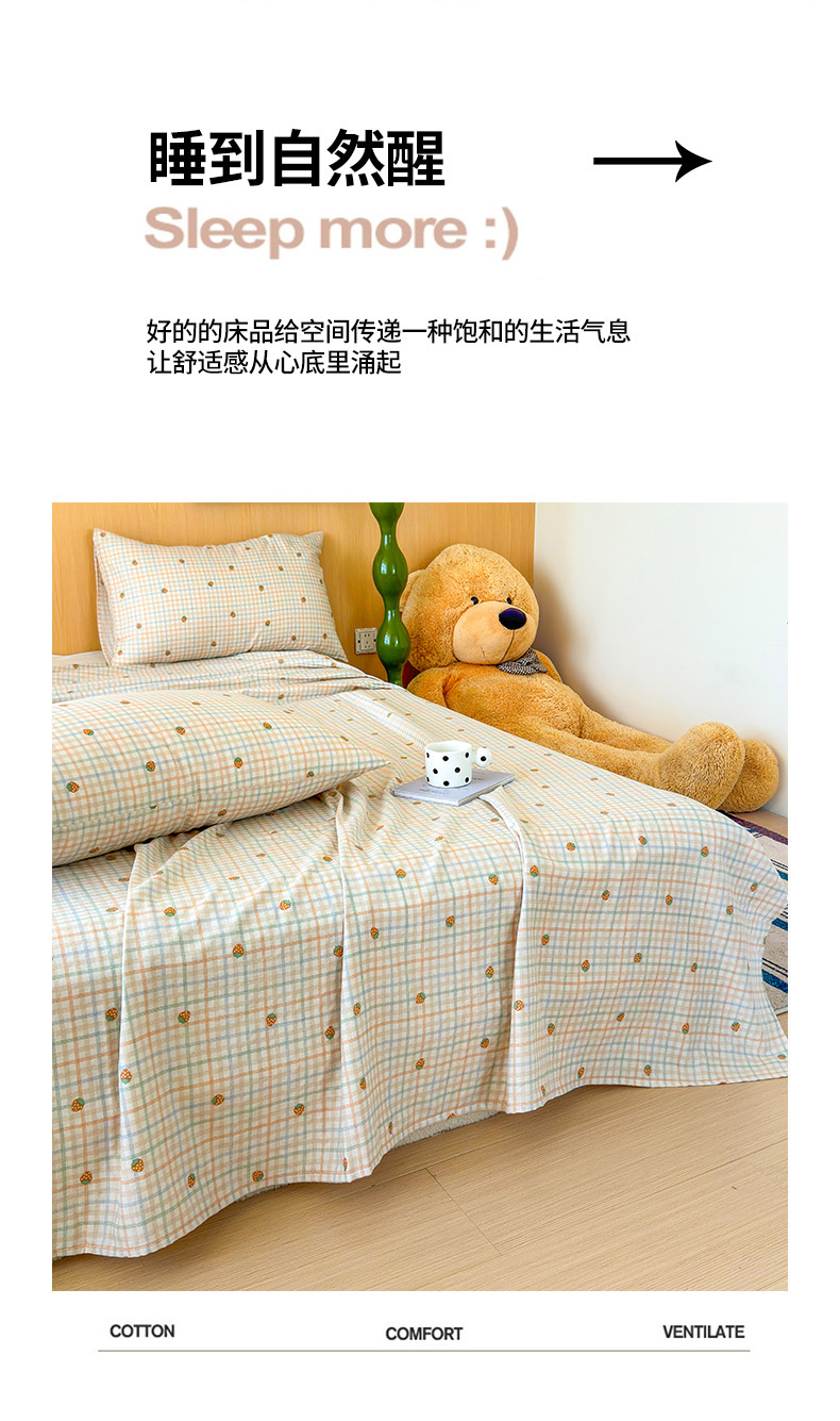 • 91家纺网 家纺一手货源 找家纺 2025新款全棉双层纱单品床单床笠枕套-单床单 格子草莓