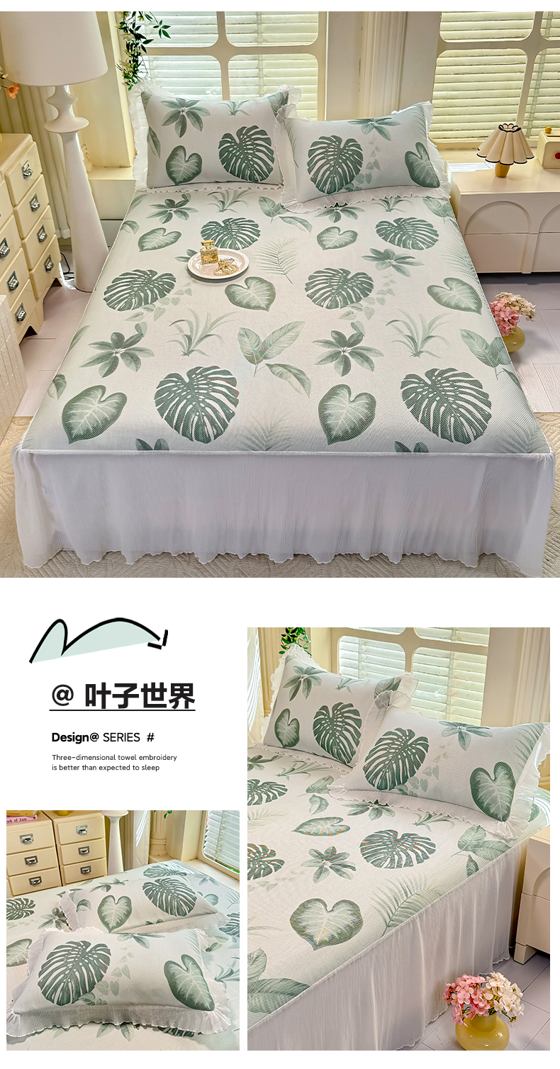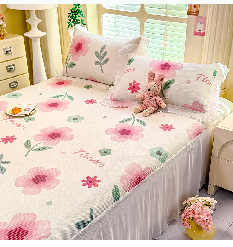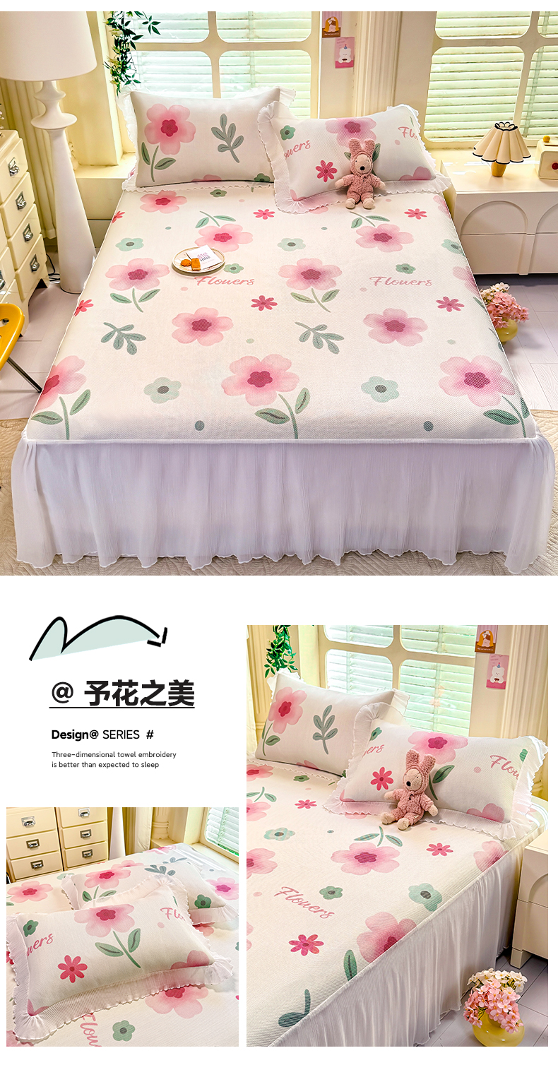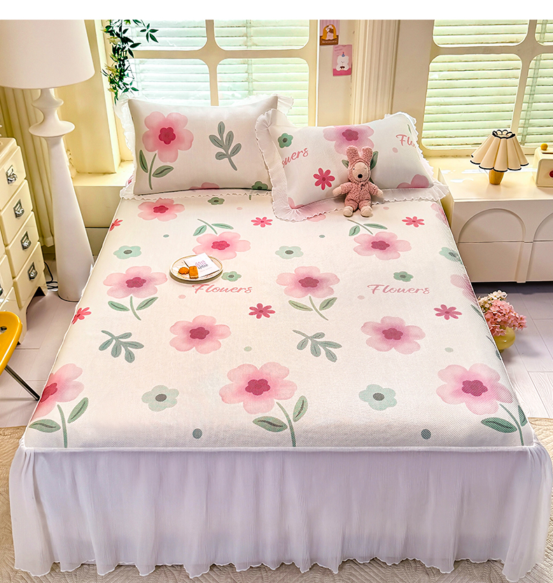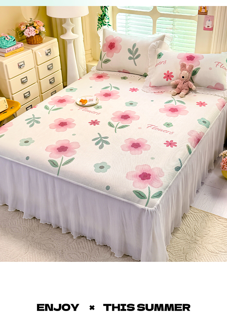 逸尚阁 2025新款印花冰藤床裙凉席三件套 花团簇簇