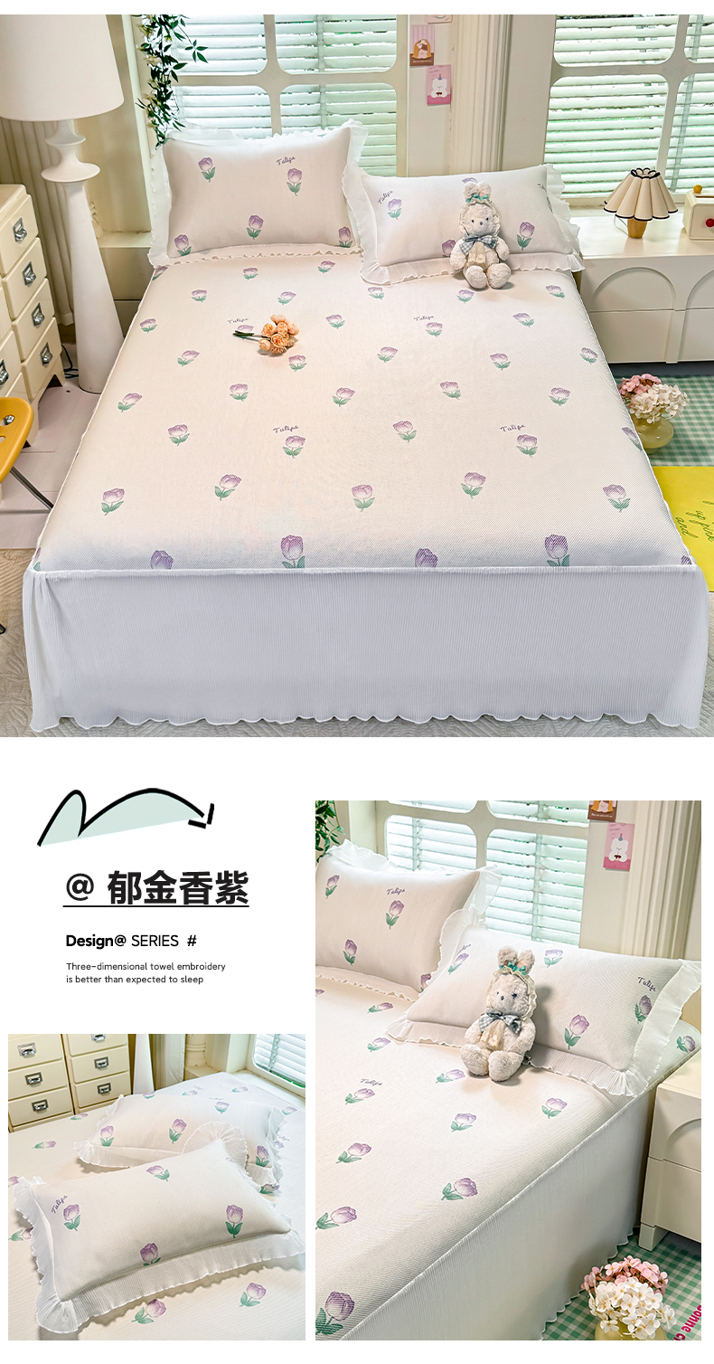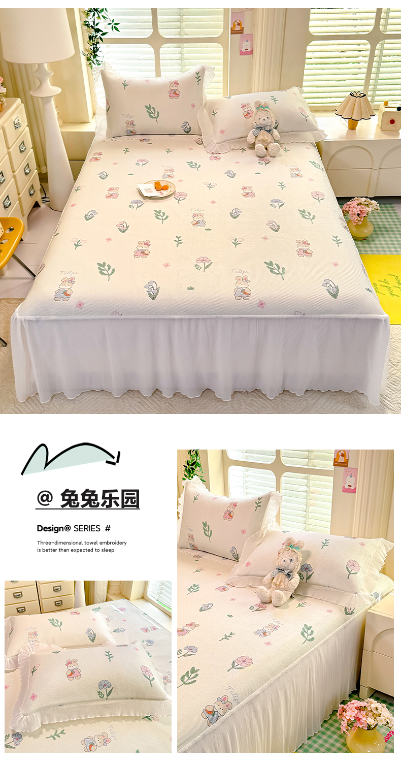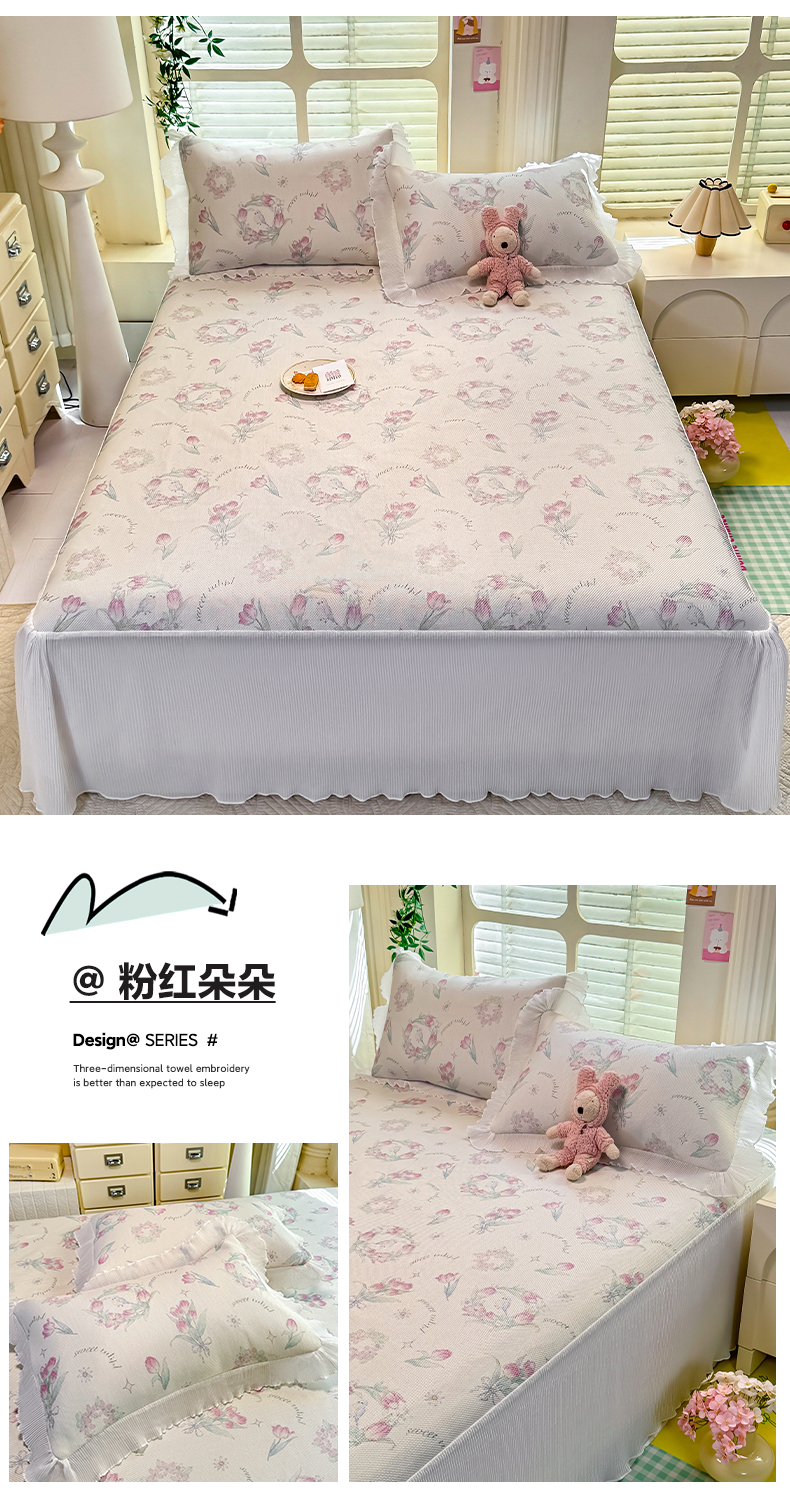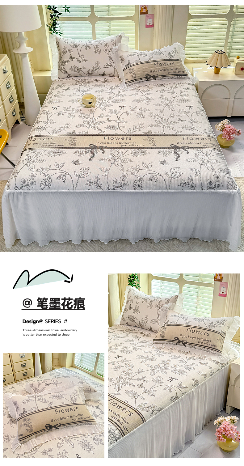 逸尚阁 2025新款印花冰藤床裙凉席三件套 花团簇簇