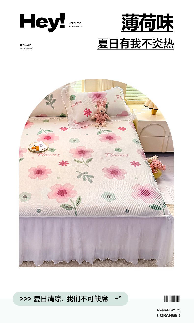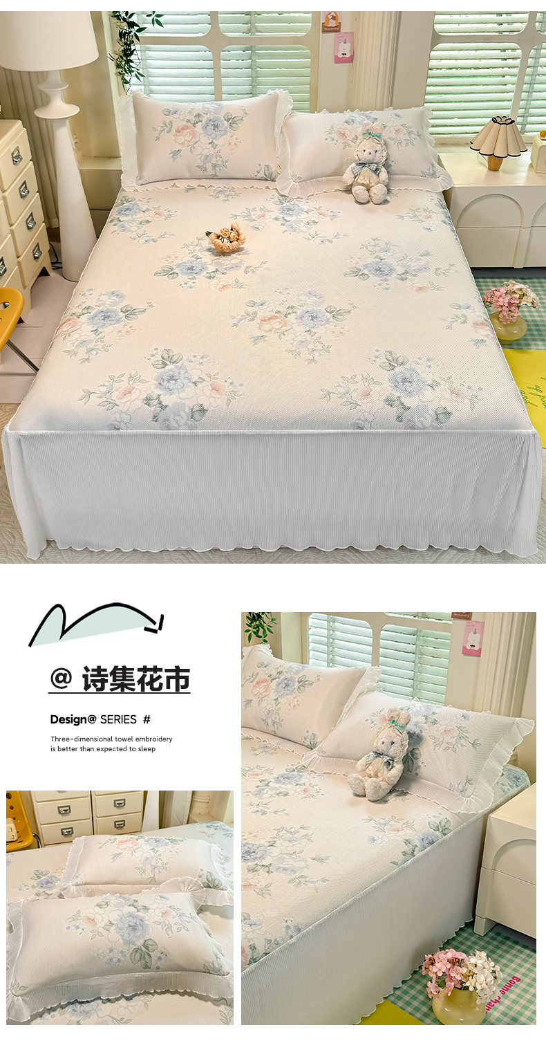 商品名称:逸尚阁 2025新款印花冰藤床裙凉席三件套 花团簇簇