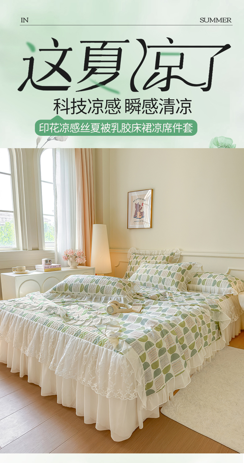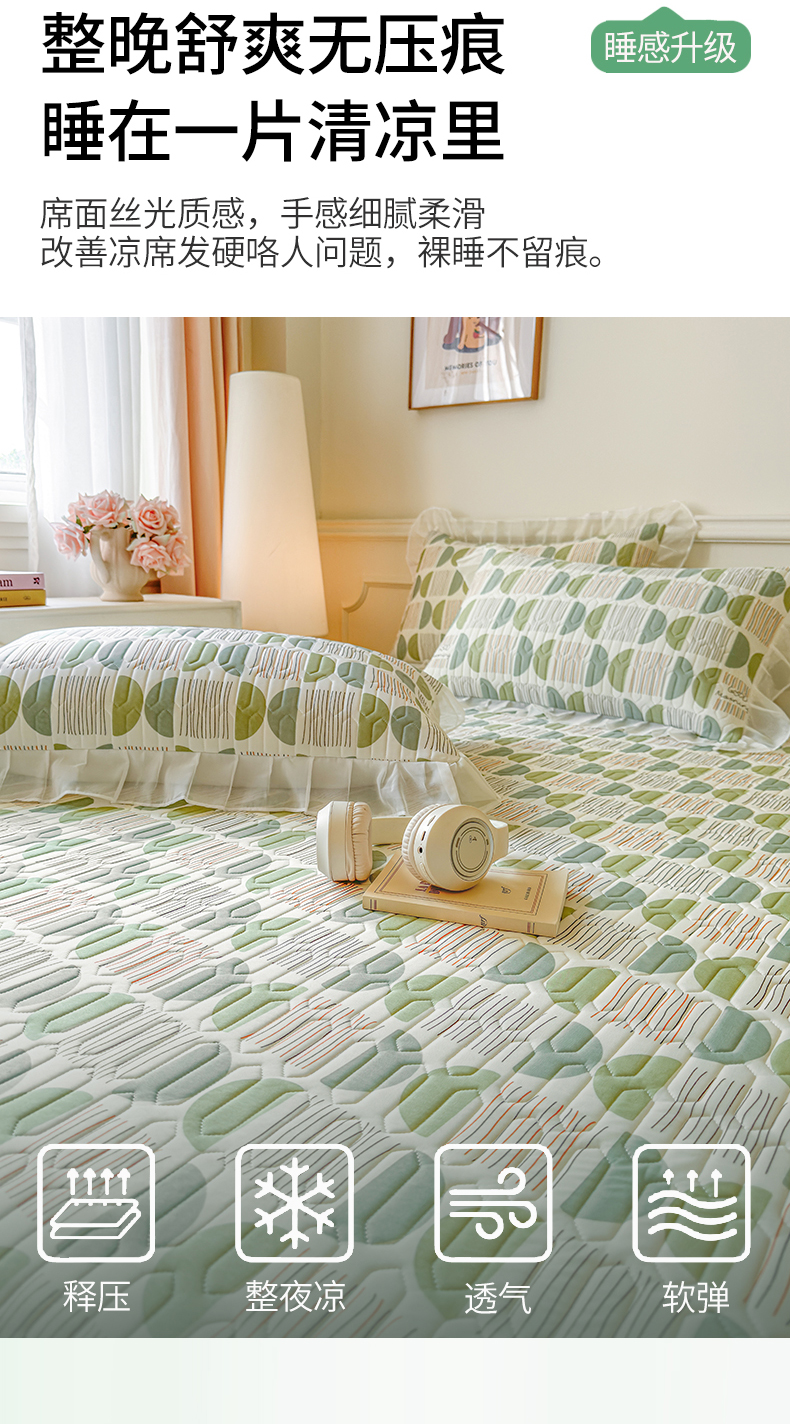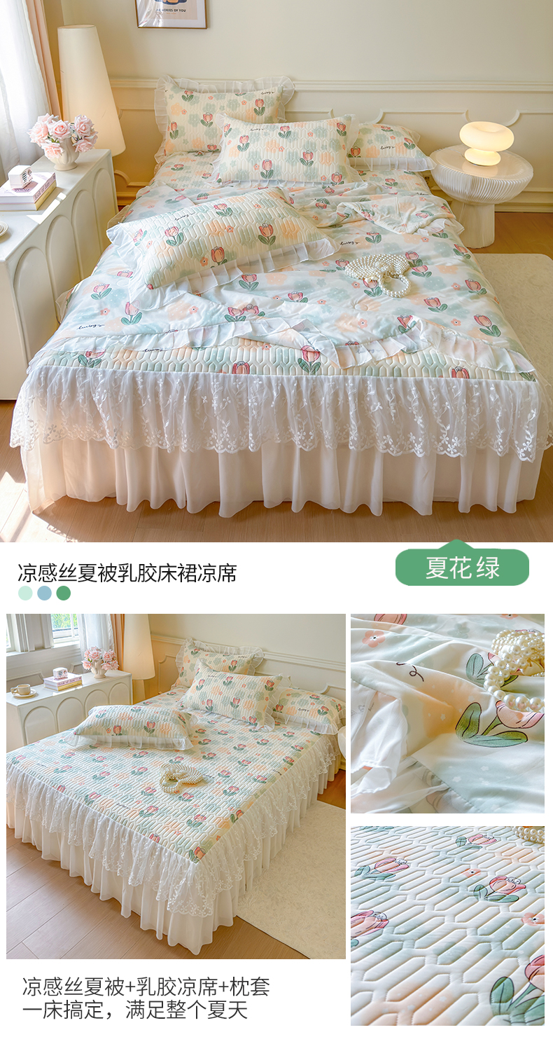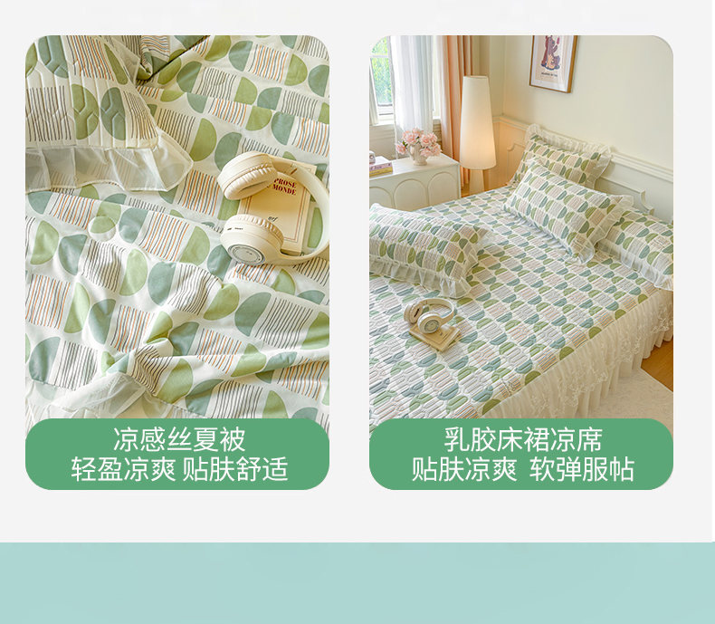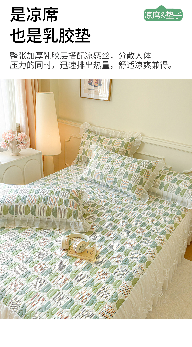 当前位置: 91家纺网 > 商品网购 > 床上用品 > 凉席 > 乳胶凉席 > 网红馆(ck家纺) 2025春夏新款印花凉感丝乳胶床裙凉席空调席夏被空调被 圆梦 绿