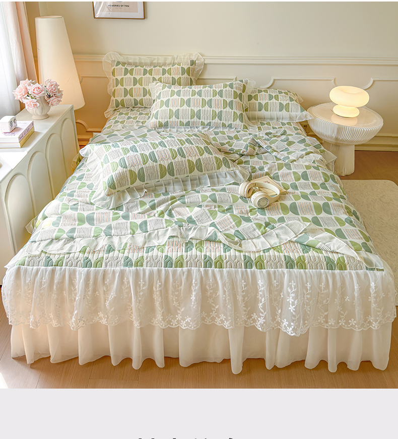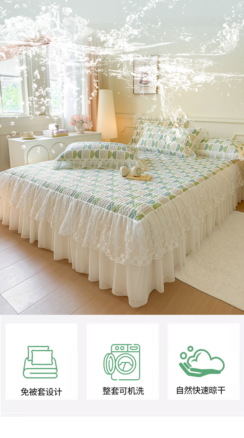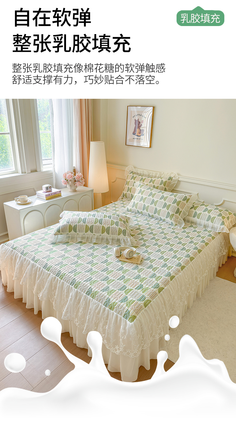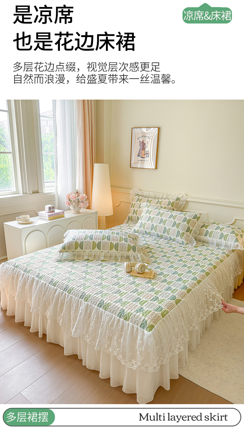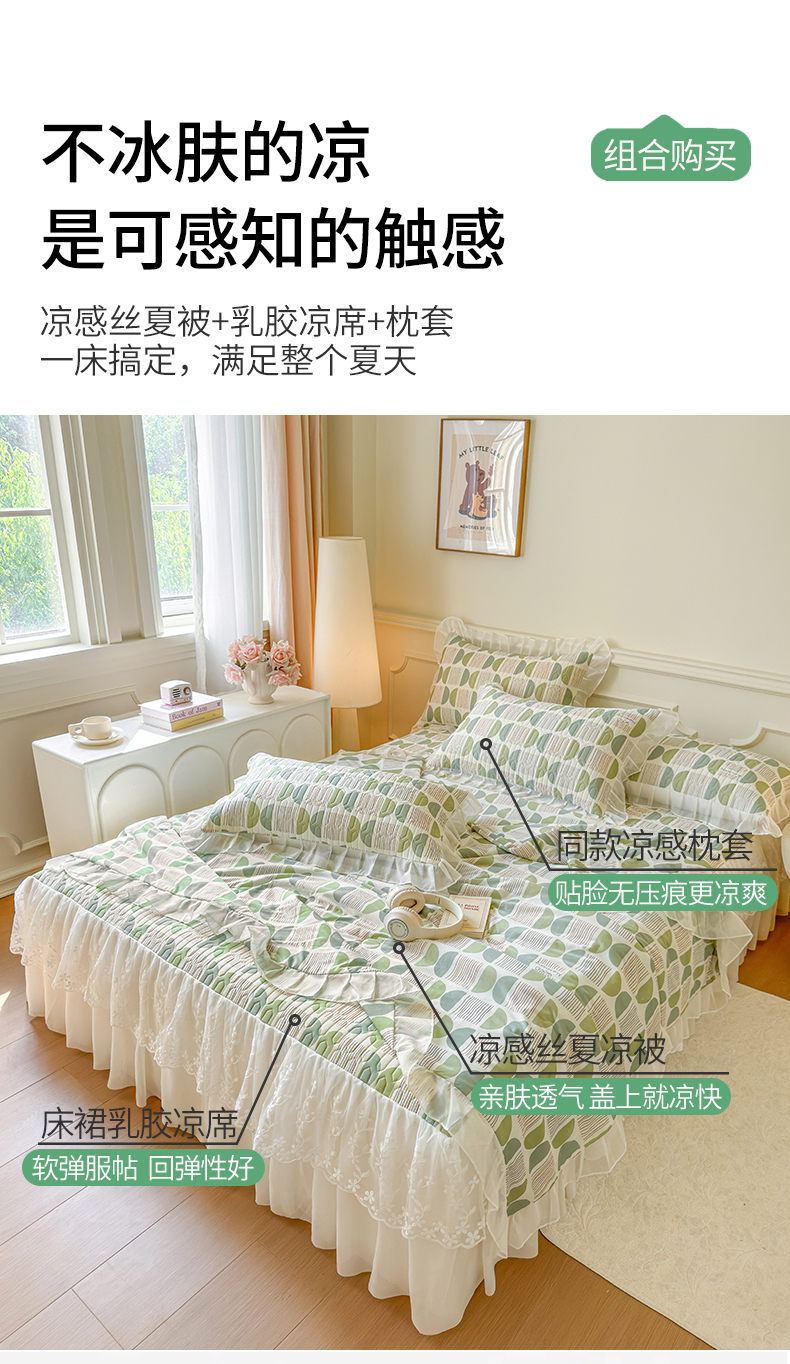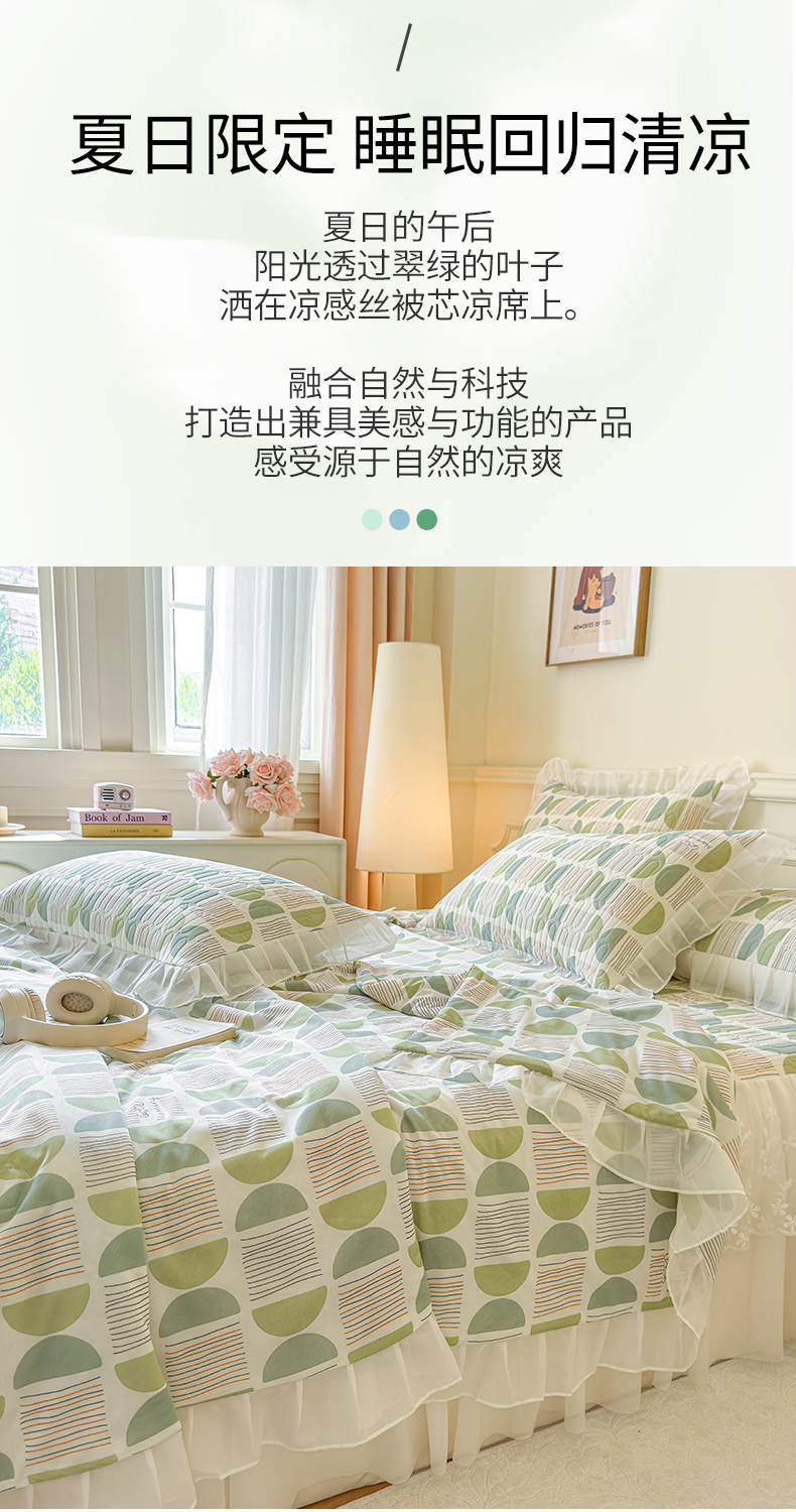 当前位置: 91家纺网 > 商品网购 > 床上用品 > 凉席 > 乳胶凉席 > 网红馆(ck家纺) 2025春夏新款印花凉感丝乳胶床裙凉席空调席夏被空调被 圆梦 绿