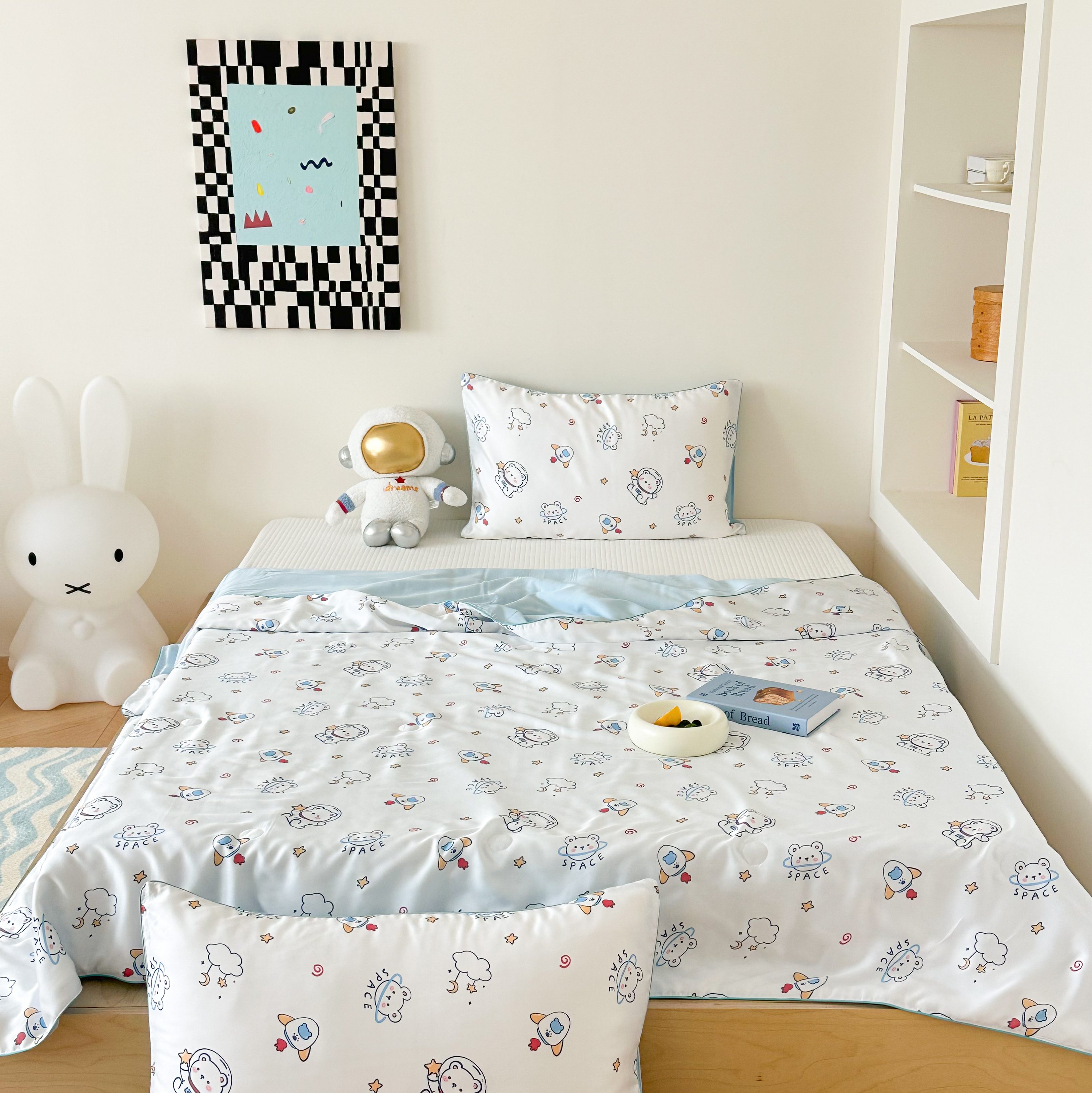 商品名称:西西家居 2025新款60支兰精天丝数码印花儿童夏被夏凉被空调被 格子熊猫-蓝