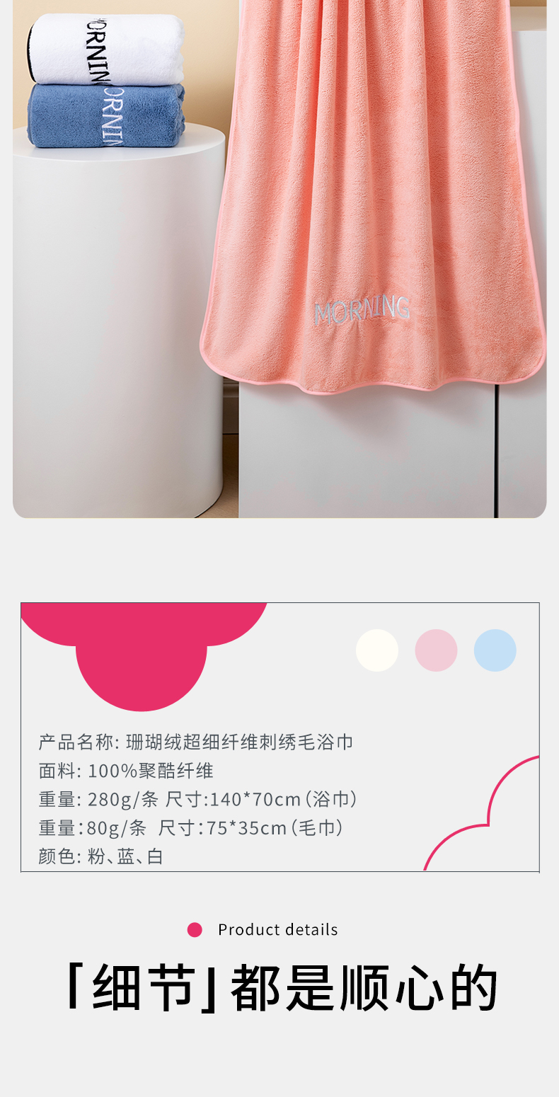 (总)珊瑚绒方巾毛巾浴巾三件套家用吸水毛巾浴巾套装开学季学生洗脸毛巾电商赠品,早安毛巾浴巾两件套随机不退不换,早安纯色方巾随机不退不换,早安浴巾随机颜色不退不换,早安毛巾随机颜色不退不换,白色 方巾35*35CM1条装,白色 毛巾35*75CM1条装,白色 浴巾70*140CM1条装,白色 方巾5条装,白色 毛巾3条装,白色 1条浴巾+1条毛巾,白色 1条浴巾+4条毛巾,白色 1条浴巾+1条毛巾+2条方巾,白色 1条浴巾+2条毛巾+5条方巾,粉色 方巾35*35CM1条装,粉色 毛巾35*75CM1条装,粉色 浴巾70*140CM1条装,粉色 方巾5条装,粉色 毛巾3条装,粉色 1条浴巾+1条毛巾,粉色 1条浴巾+4条毛巾,粉色 1条浴巾+1条毛巾+2条方巾,粉色 1条浴巾+2条毛巾+5条方巾,蓝色 方巾35*35CM1条装,蓝色 毛巾35*75CM1条装,蓝色 浴巾70*140CM1条装,蓝色 方巾5条装,蓝色 毛巾3条装,蓝色 1条浴巾+1条毛巾,蓝色 1条浴巾+4条毛巾,蓝色 1条浴巾+1条毛巾+2条方巾,蓝色 1条浴巾+2条毛巾+5条方巾,早安毛巾3色装,早安浴巾3色装