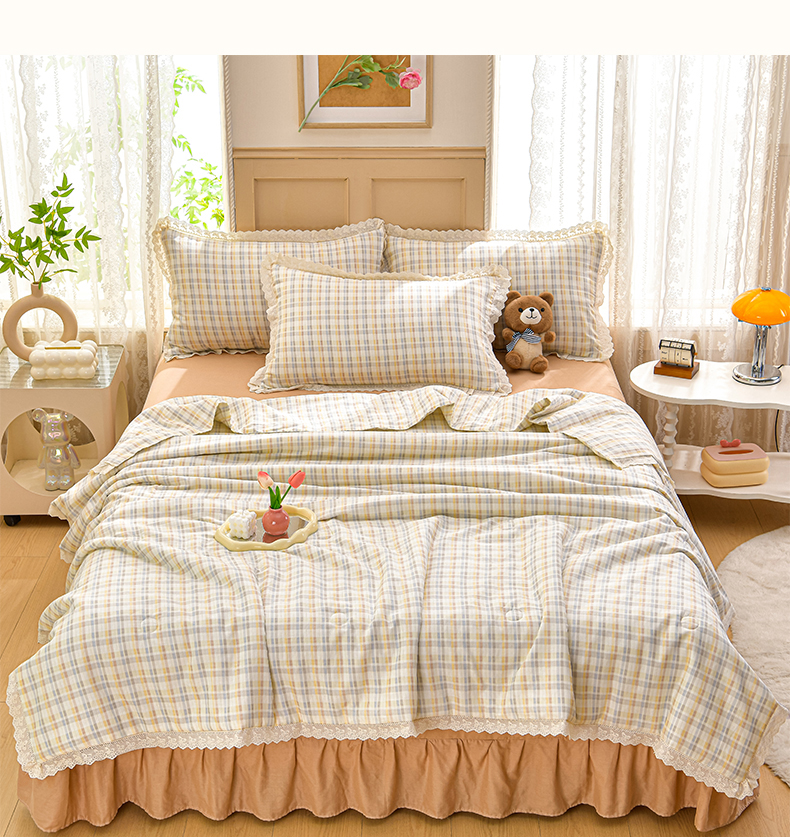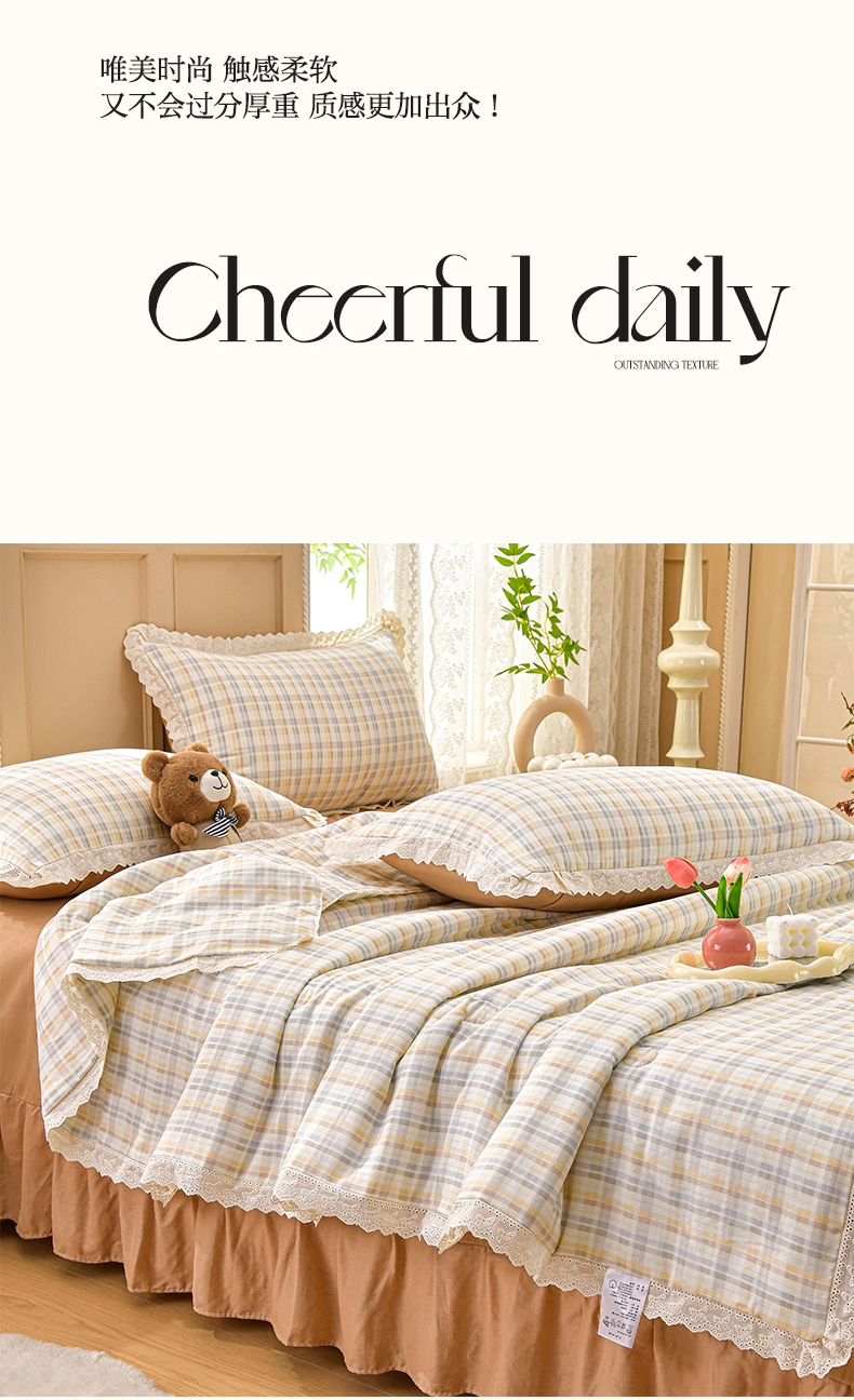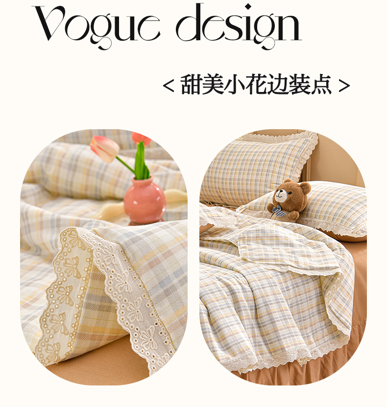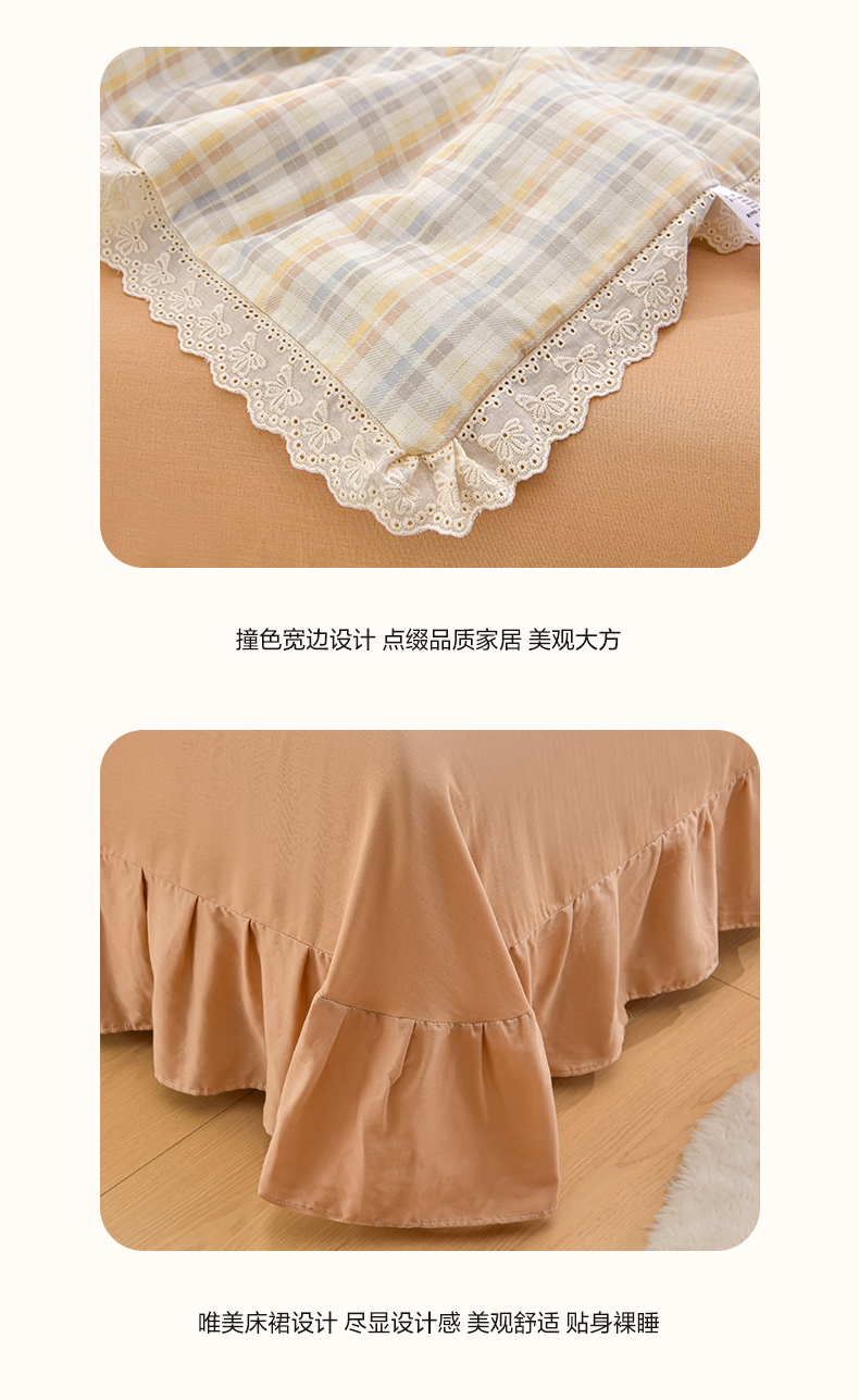 绘萱家居 2025新款100%全棉双层纱花边床裙款夏被四件套