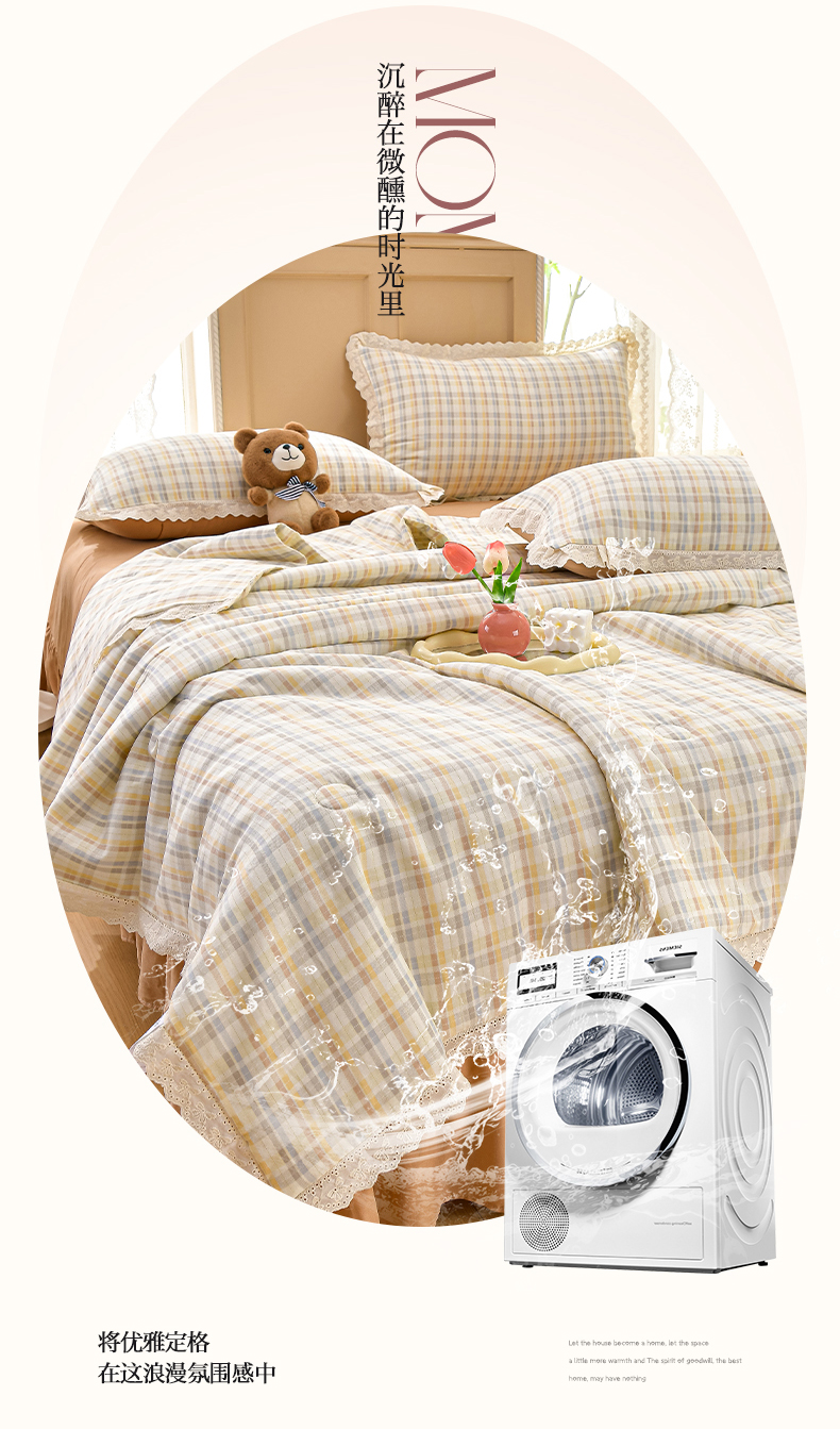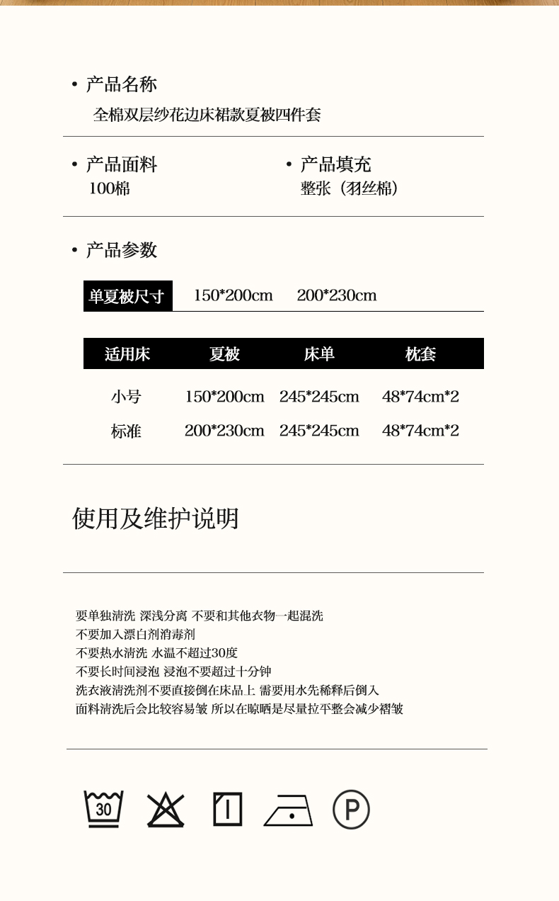 商品名称:绘萱家居 2025新款100%全棉双层纱花边床裙款夏被四件套