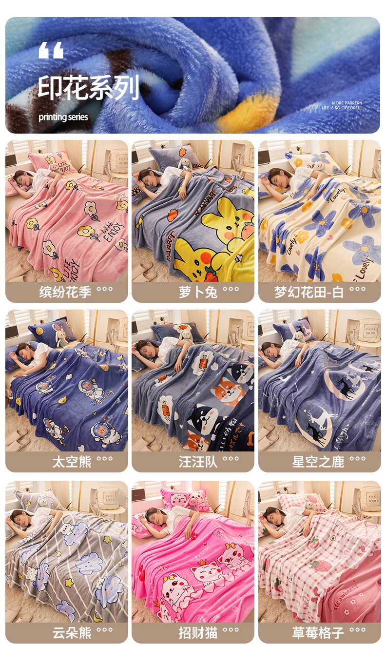 合纵跨境工厂 2025新款印花牛奶绒毛毯法莱绒雪花绒贝贝绒双面绒毛毯跨境外贸JIT一件代发TEMU亚马逊希音包过核价印花毛毯 草莓格子