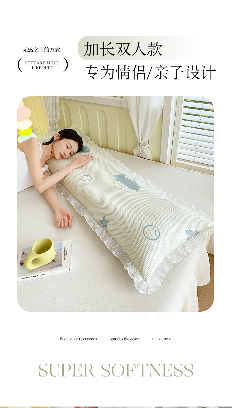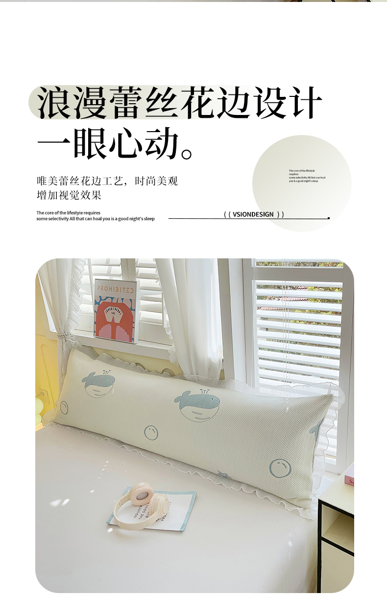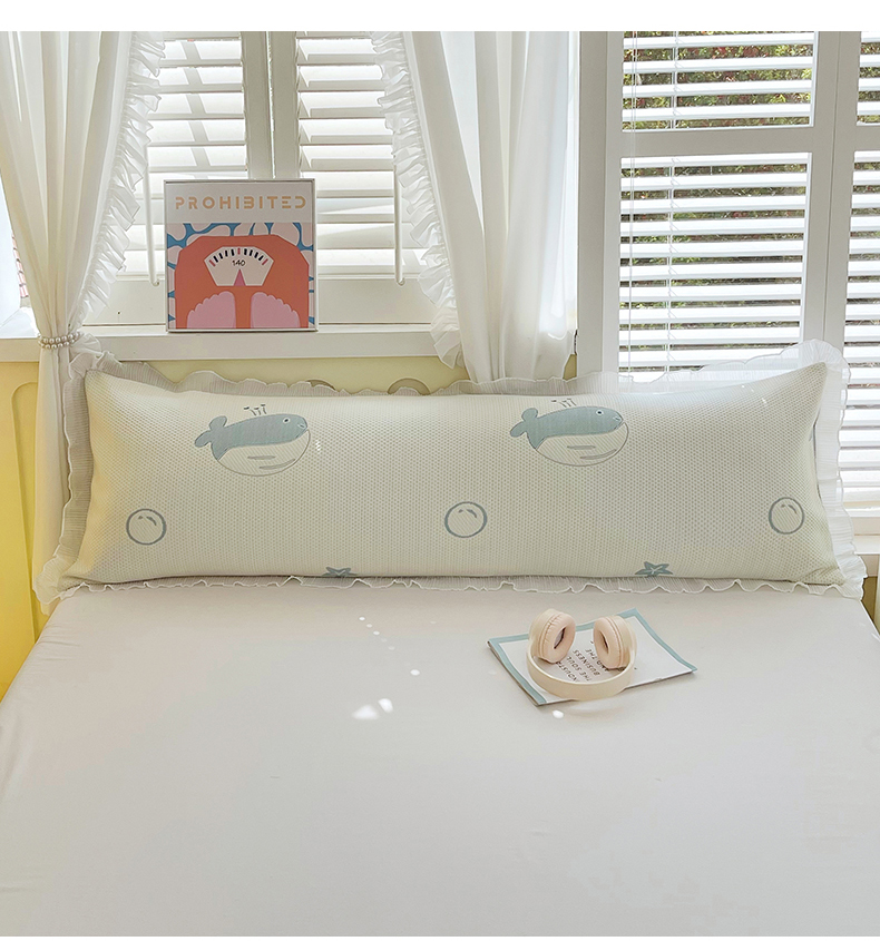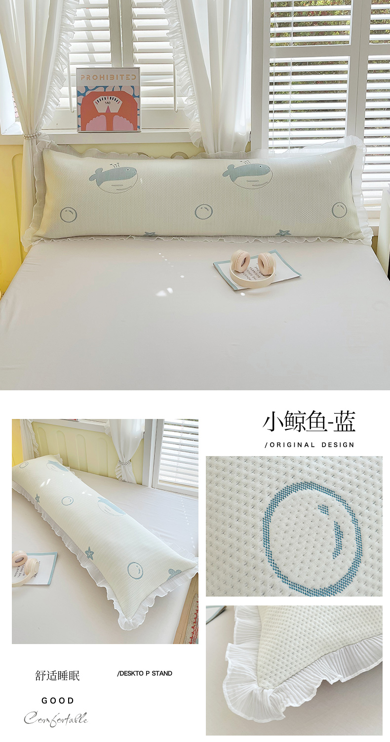 商品名称:雨彤家纺 2025新款冰豆豆蕾丝花边双人长枕套单品枕套枕套单件 小鲸鱼-蓝