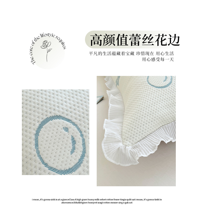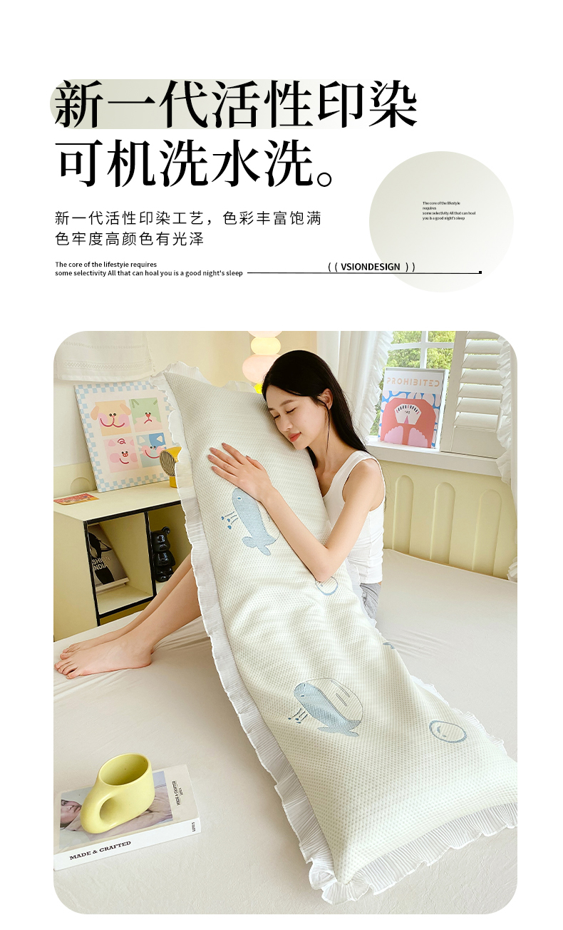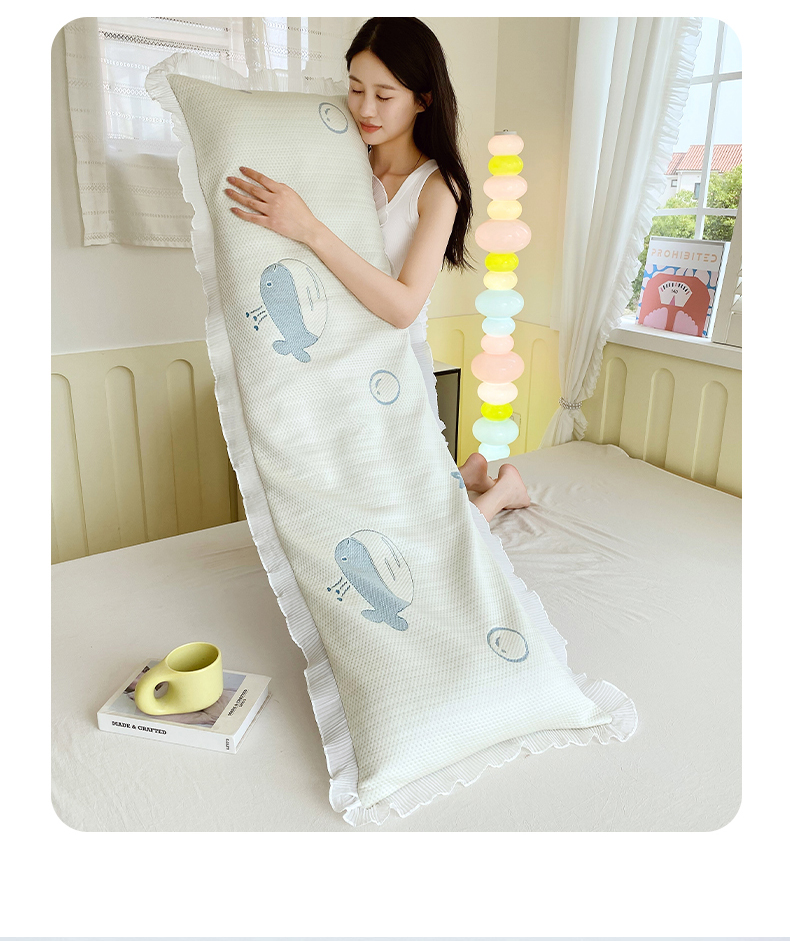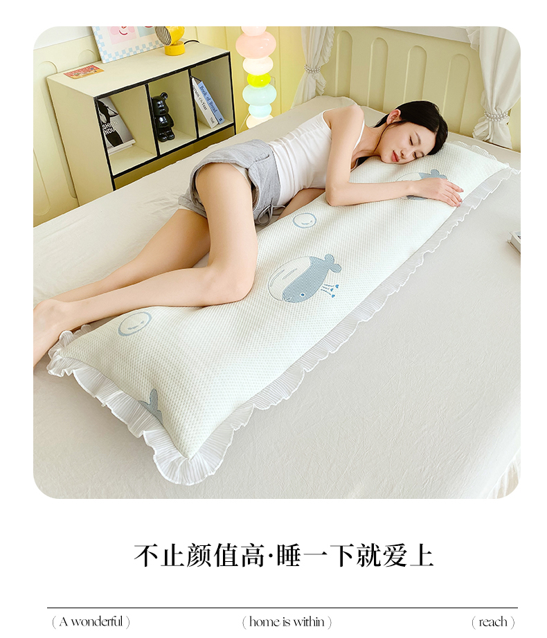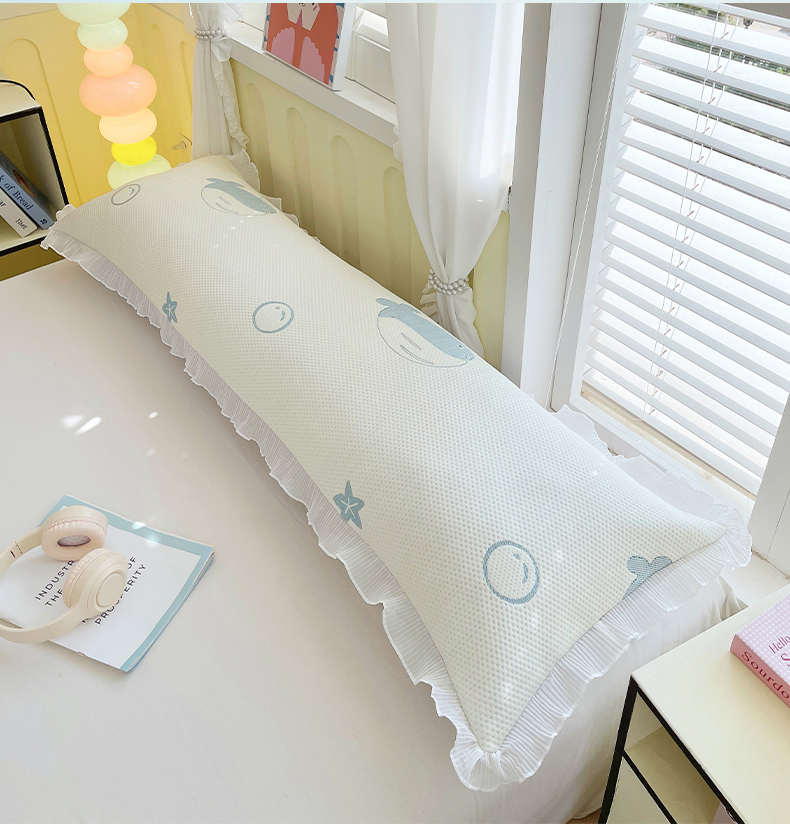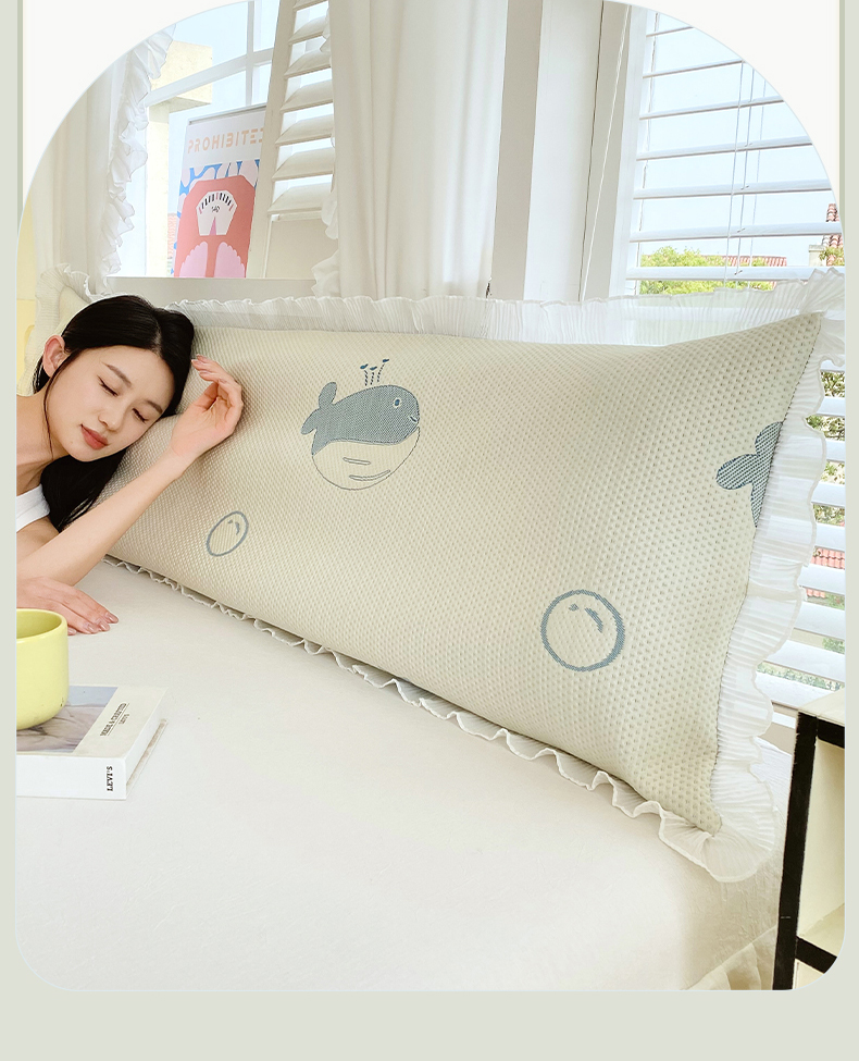 商品名称:雨彤家纺 2025新款冰豆豆蕾丝花边双人长枕套单品枕套枕套单件 小鲸鱼-蓝